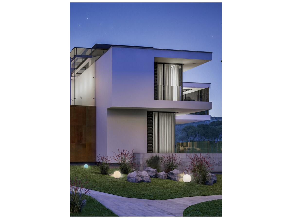 Оснащенный встроенными светодиодами мощностью 5 Вт, светильник создает мягкий световой поток в 30 люмен, обеспечивая комфортное освещение территории. Белый пластиковый корпус не только выдерживает воздействия влаги и пыли, но и придает изделию аккуратный и современный внешний вид.