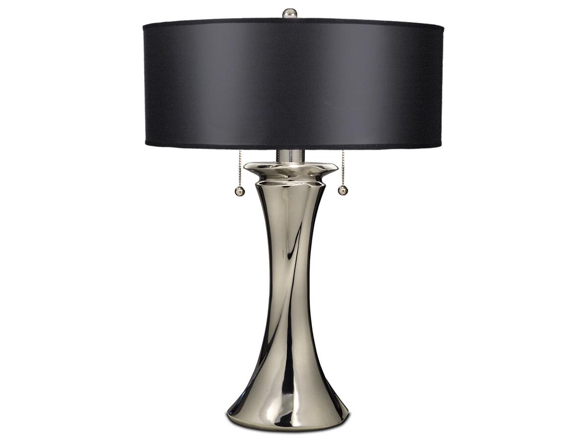 Эта элегантная настольная лампа станет гармоничным дополнением любого помещения. Изящный металлический корпус с никелевым покрытием и черный текстильный плафон придают изделию стильный и сдержанный вид, идеально вписываясь в классический интерьер.