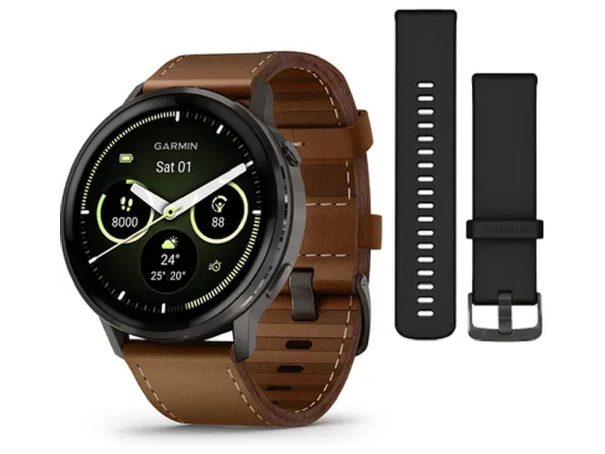 Смарт-часы Garmin Venu 4 (45mm), Black w/ Slate + Leather, GPS (010-03014-03)