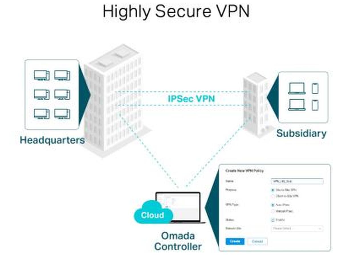 Выделяется безопасным VPN-подключением, которое поддерживает до 100 IPsec-подключений LAN-to-LAN, а также до 50 OpenVPN, L2TP и PPTP VPN-подключений. Это делает его идеальным выбором для защищенной передачи данных в корпоративной среде.