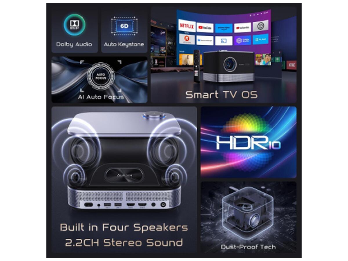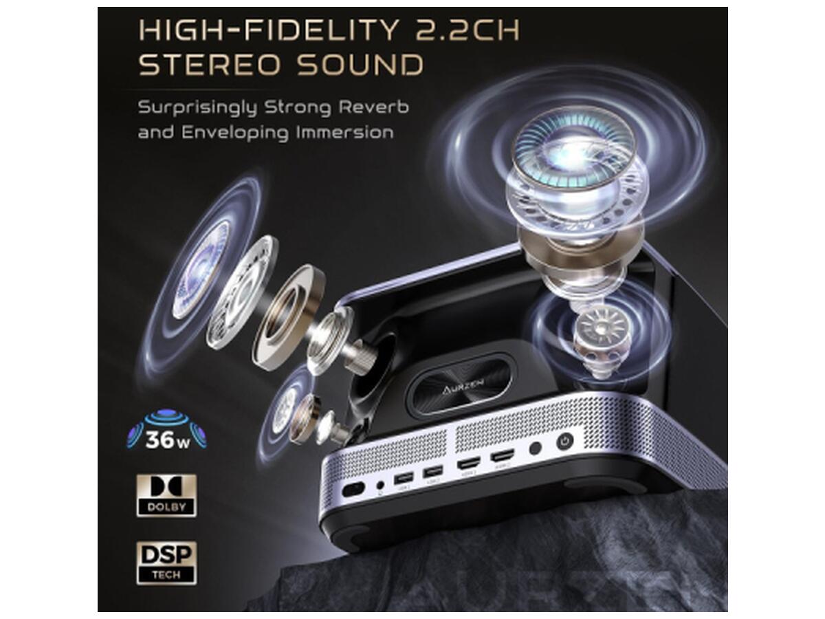 Современный Aurzen BOOM 3 – это не просто проектор, а целый мультимедийный центр, соединяющий передовые технологии изображения, мощный звук и Smart TV возможности.