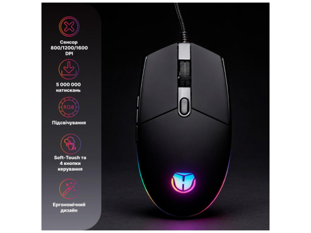 Оптический сенсор с регулируемым разрешением до 1600 dpi позволяет подстраивать чувствительность под разные задачи, а четыре программируемые кнопки упрощают управление игровыми функциями.