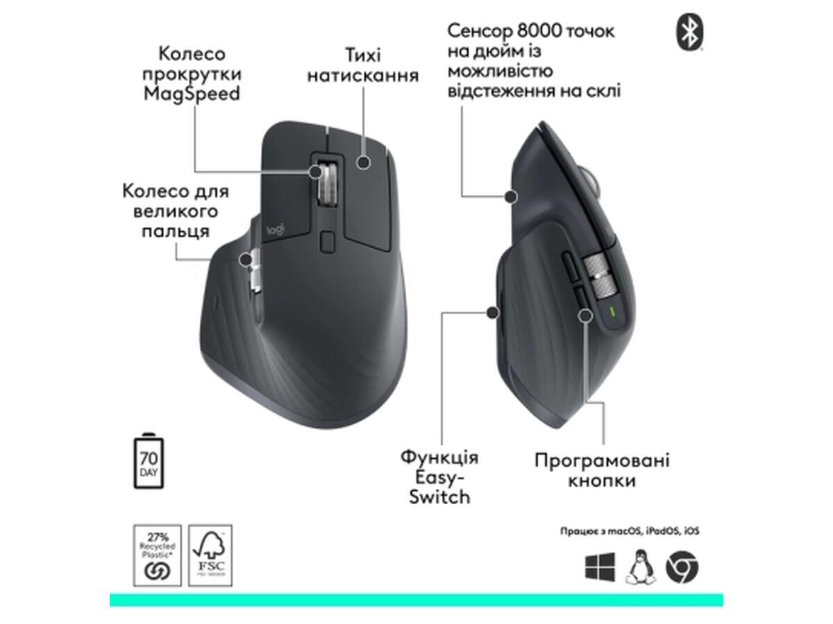 Мышка Logitech MX Master 3S Performance Bluetooth Graphite (910-007501)