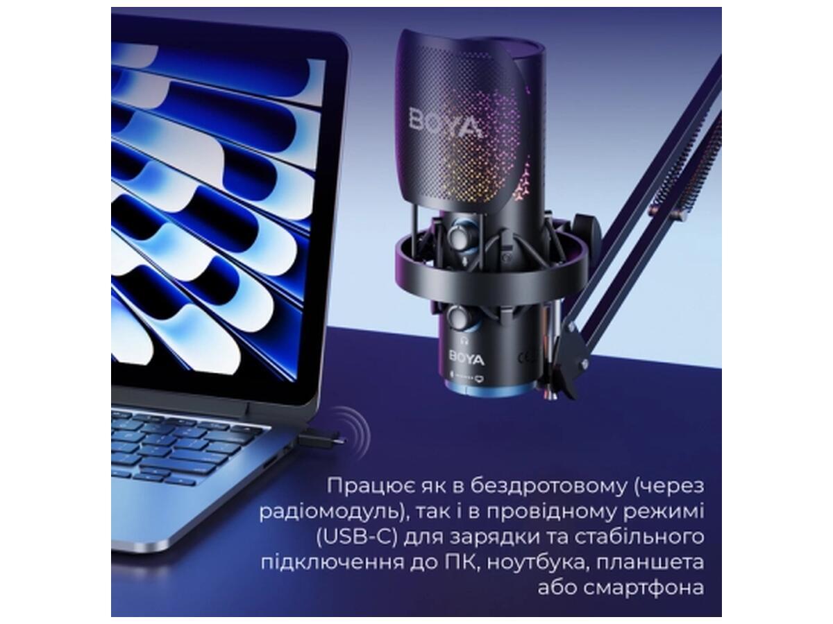 BOYA K5 – это инновационный беспроводной USB-микрофон, который освобождает ваше творчество. Сочетая профессиональное качество звука с универсальностью двойного режима работы (проводящий/беспроводной), он становится идеальным центром для стриминга, записи подкастов, общения в играх и музыкального творчества.
