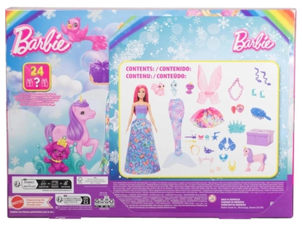 Роскошный рождественский календарь от Barbie, скрывающий сюрпризы для создания уникальных образов.