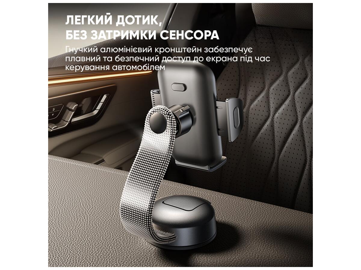 Этот автомобильный держатель от Baseus сочетает надежность и стильный дизайн. Благодаря прочной вакуумной присоске, способной выдерживать нагрузку до 5 кг, устройство уверенно фиксирует телефон даже при езде по неровным дорогам или выполнении маневров. Гибкий алюминиевый кронштейн легко регулируется, позволяя настроить положение смартфона под любым углом и защищая от вибраций.