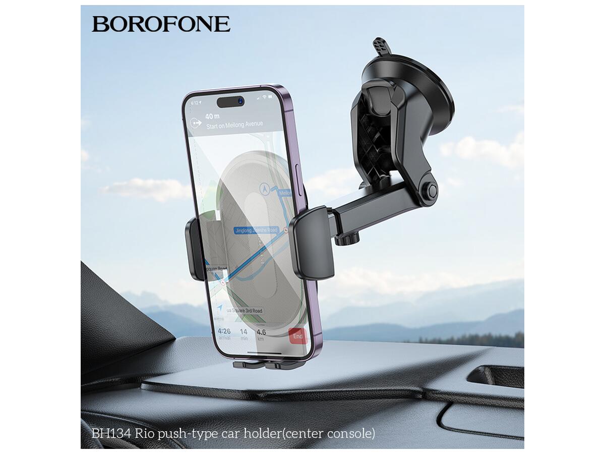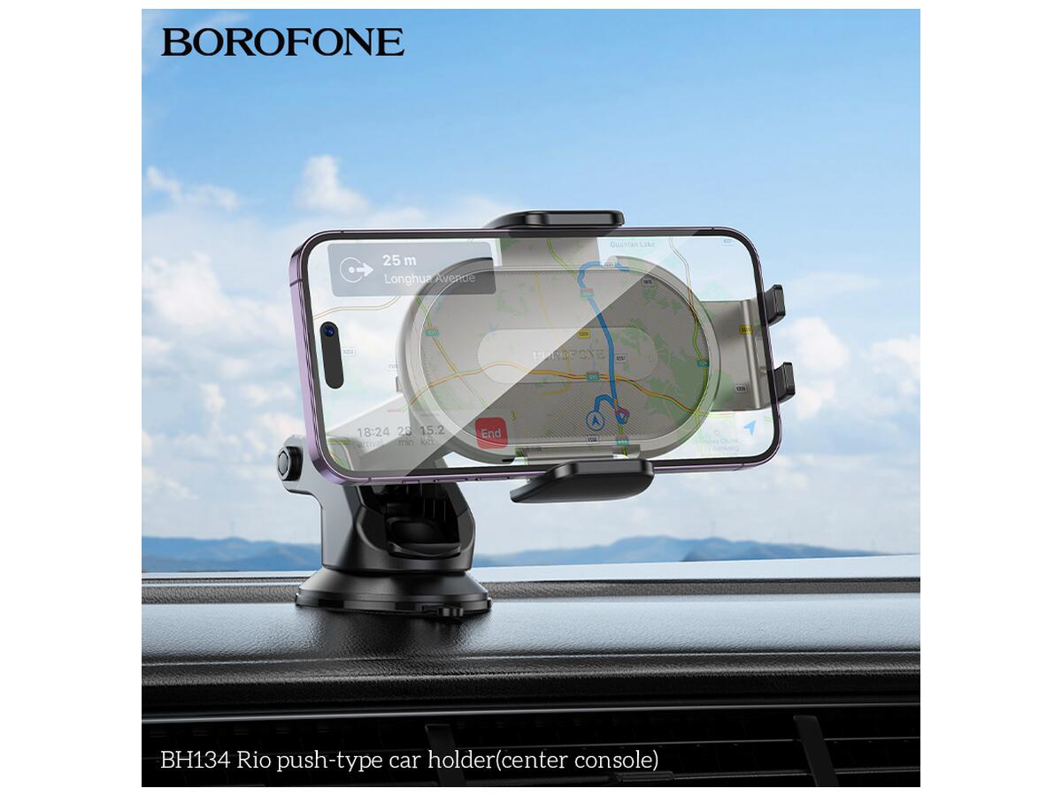 Автодержатель для телефона BOROFONE BH134 Rio push-type car holder (center console) Black (6941991120671)