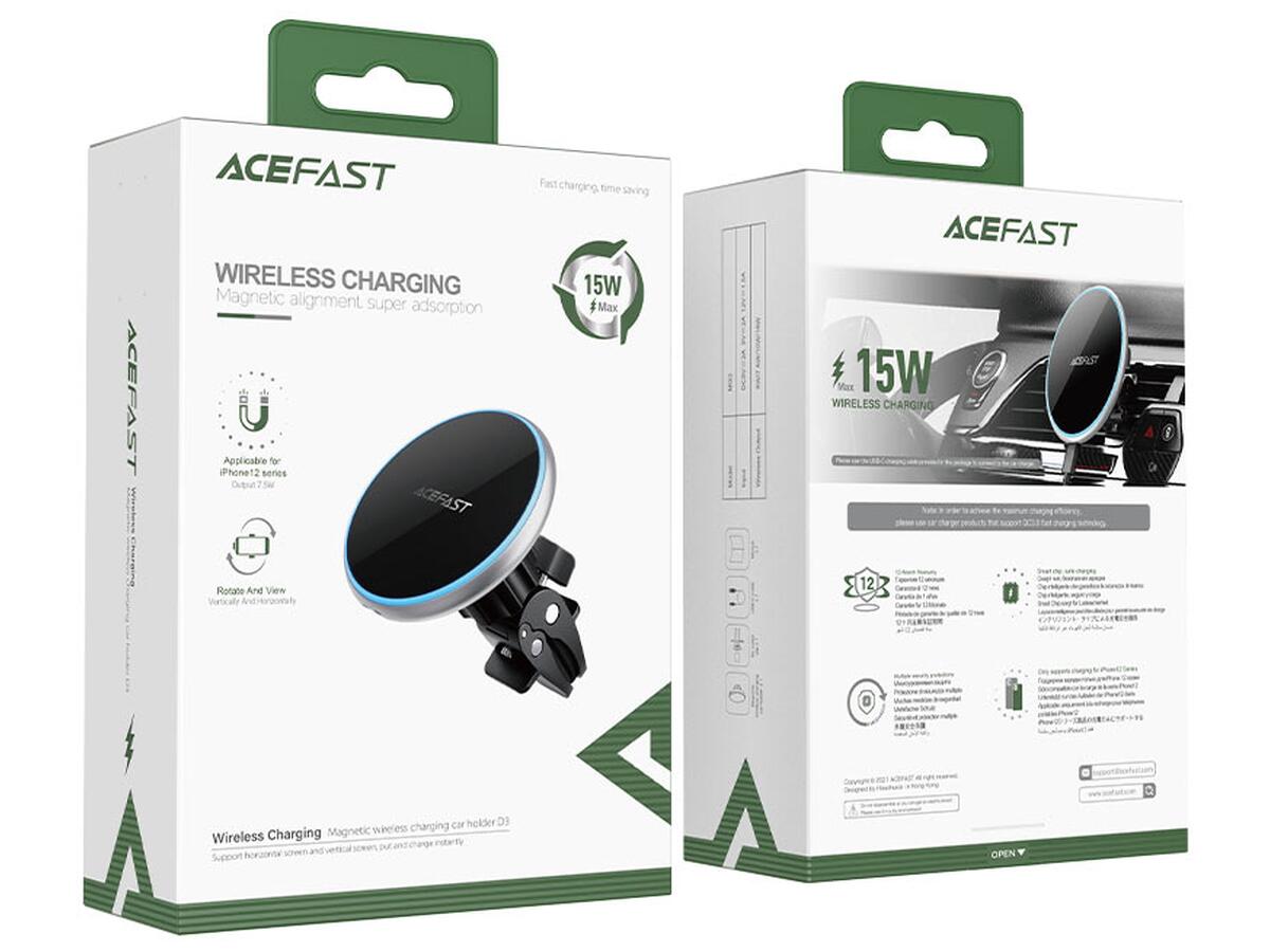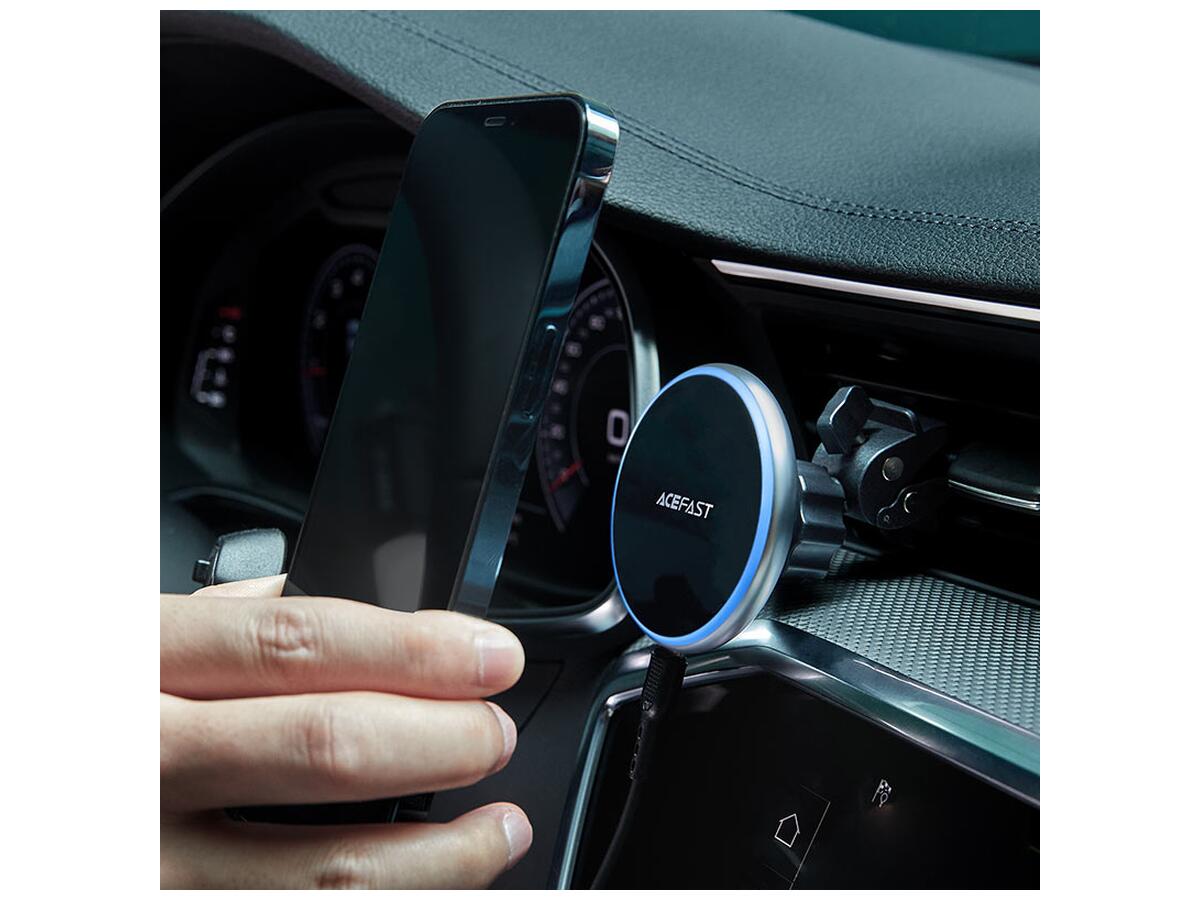 Автомобильный держатель ACEFAST D3 сочетает удобство магнитного крепления и функцию беспроводной зарядки, разработанный специально для модели iPhone 12. Зарядка осуществляется через разъем USB-C, обеспечивая надежное и быстрое питание устройства.