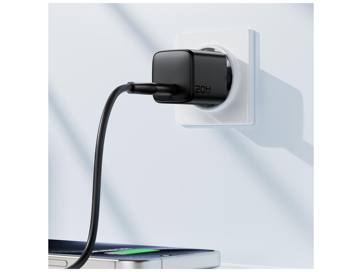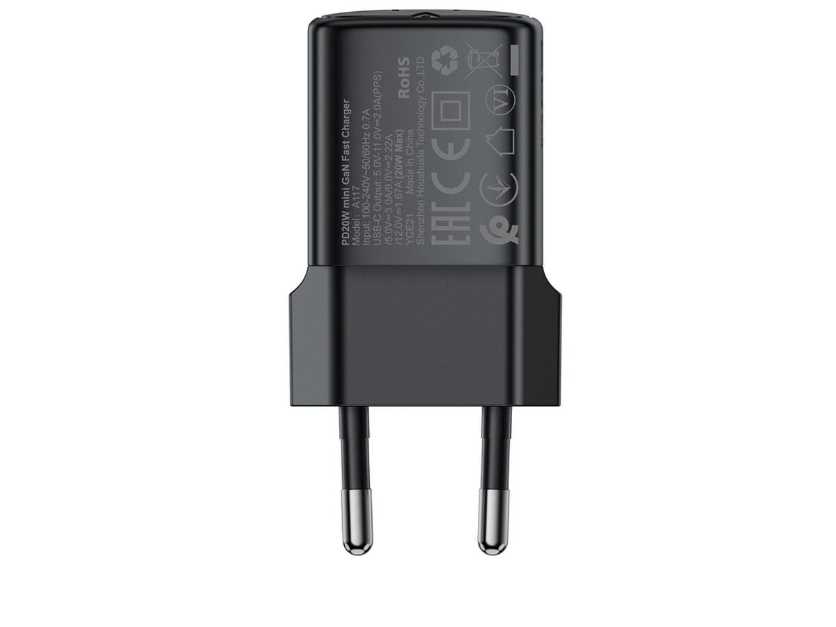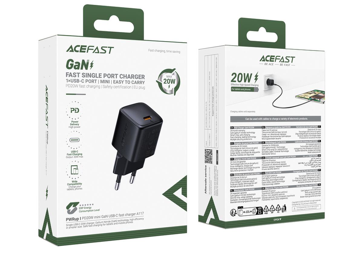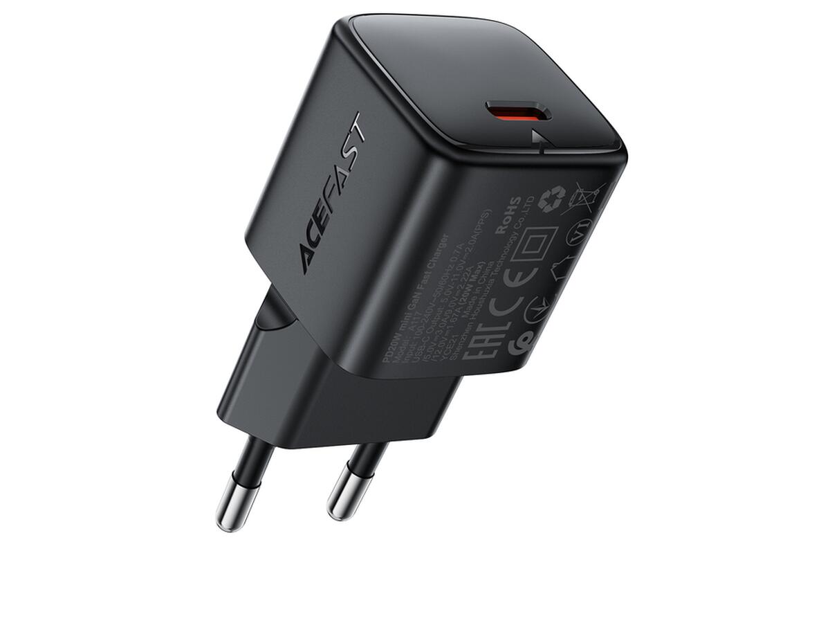 Сетевое зарядное устройство ACEFAST A117 PD20W mini GaN USB-C fast charger Black (6974316284987)