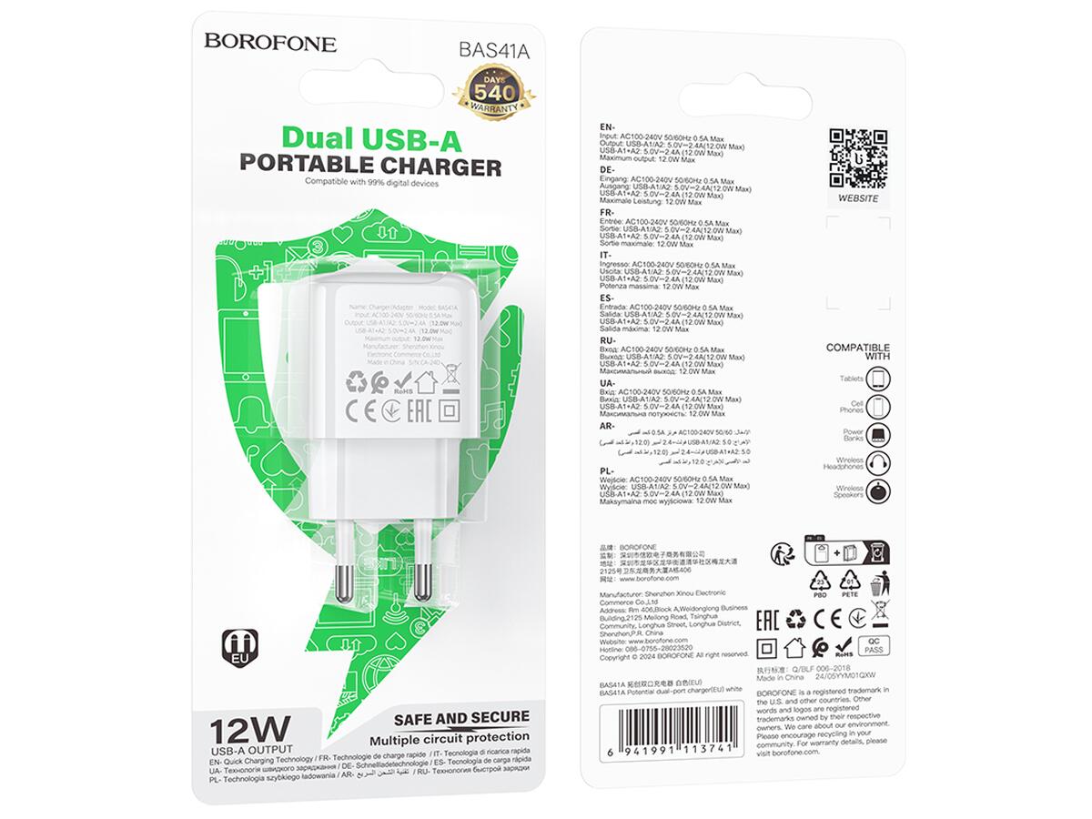 Сетевое зарядное устройство BOROFONE BAS41A Potential dual-port charger White (6941991113741)