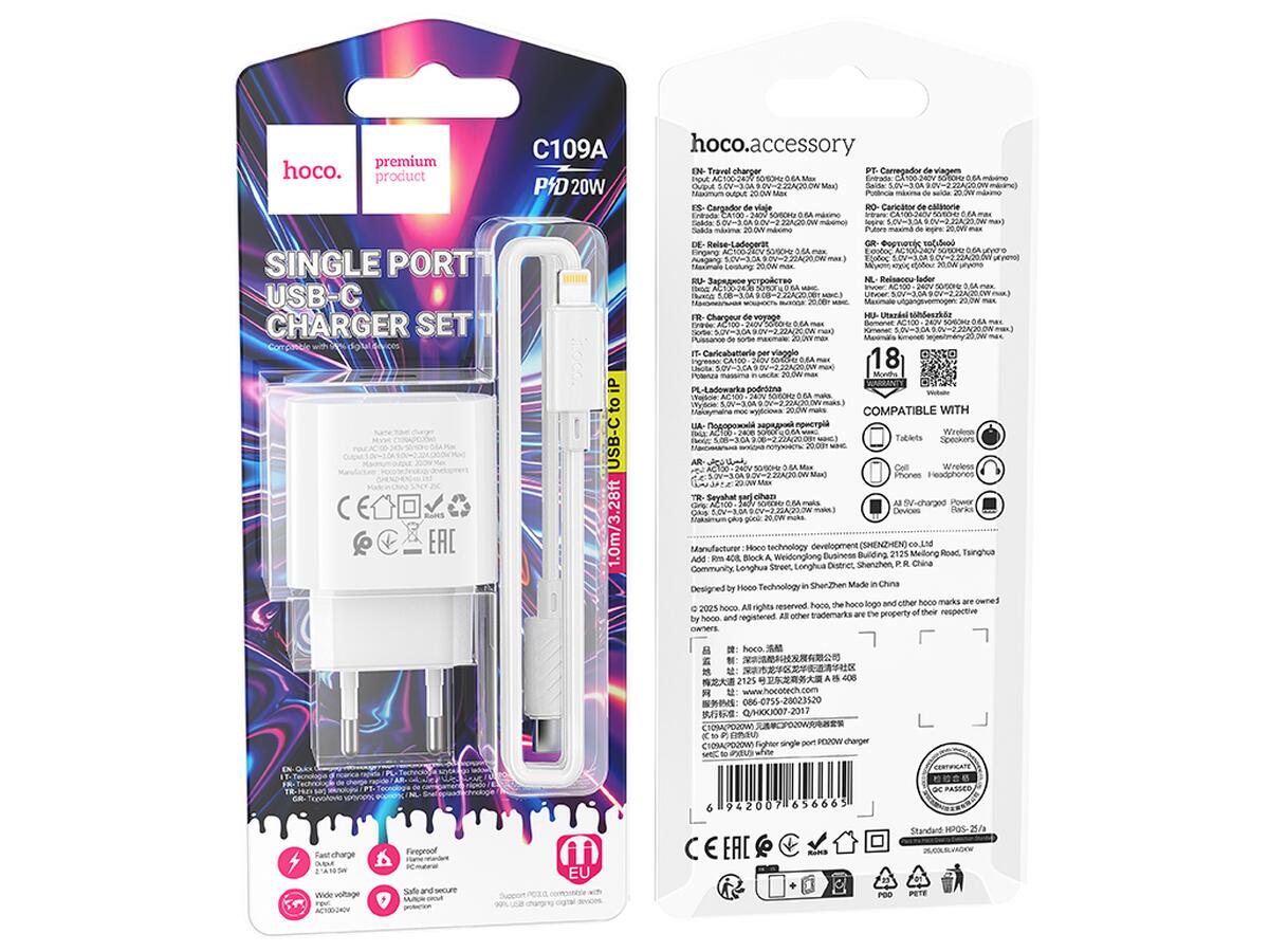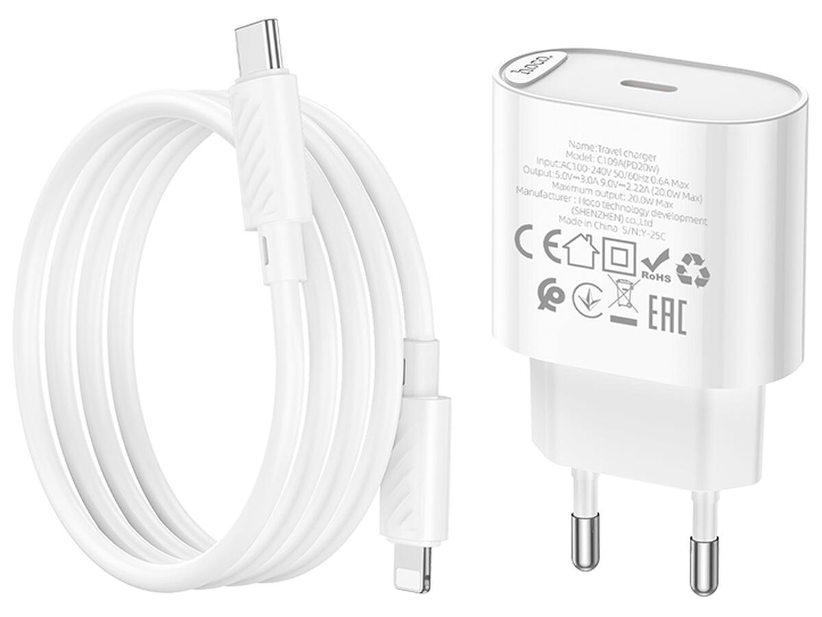 Сетевое зарядное устройство HOCO C109A(PD20W) с кабелем Lightning