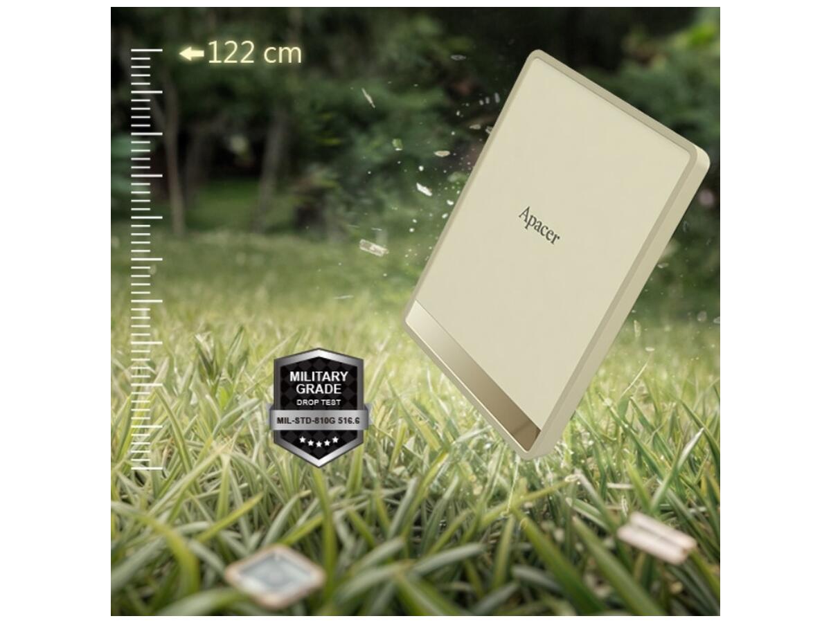 Прочная конструкция. SSD Apacer AS724 выдержал испытания на падение с высоты 1,22 метра, что гарантирует сохранность ваших данных даже при случайных ударах или падениях из рук.