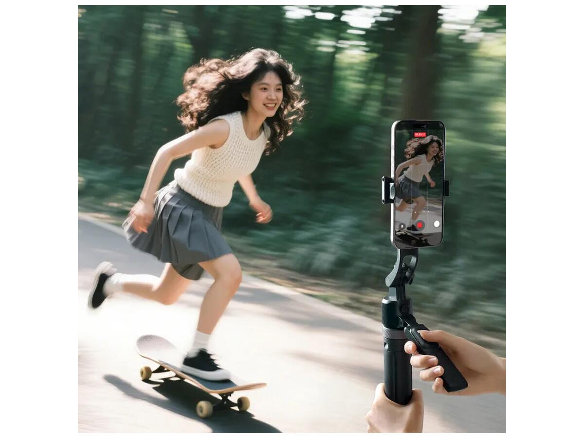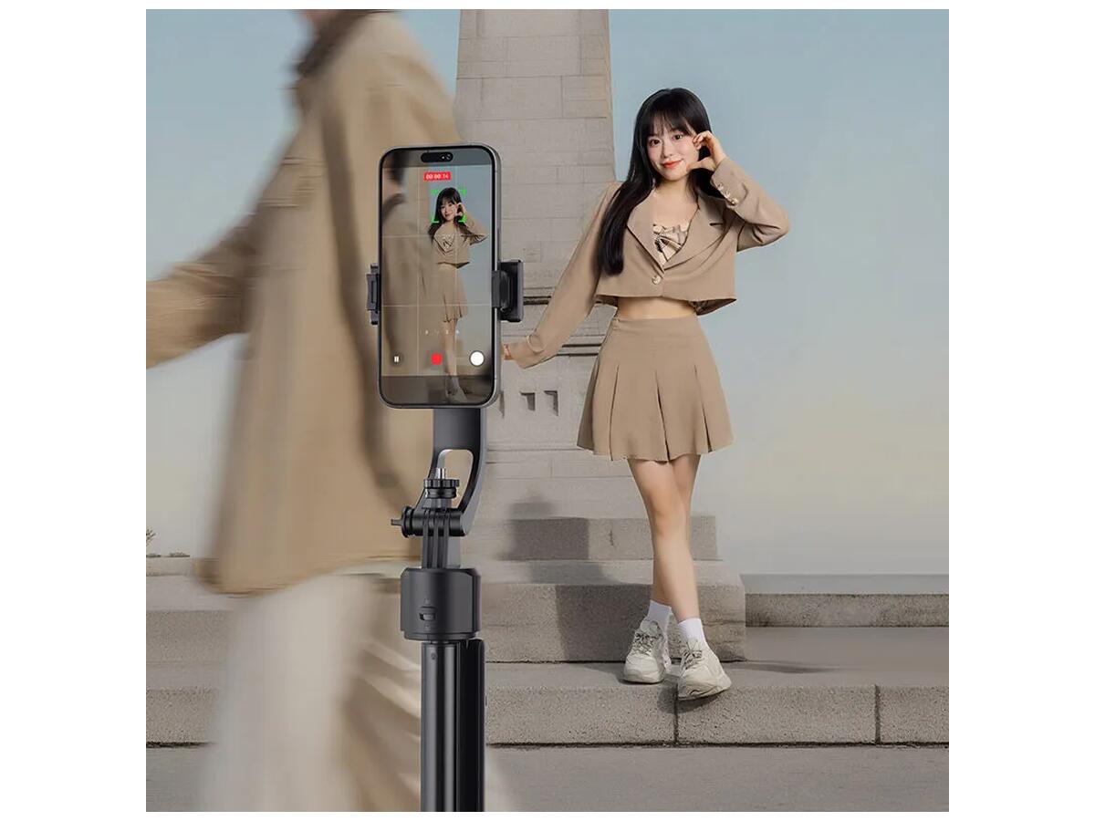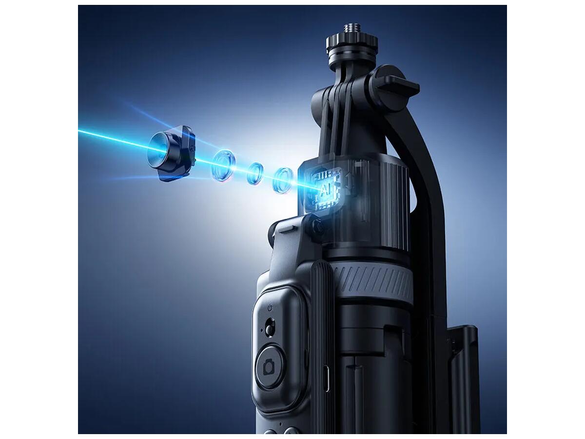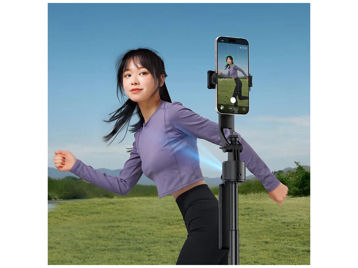 Монопод легко трансформируется из портативной селфи-палки в полноценный штатив с максимальной высотой 163 см, что позволяет выбрать идеальный угол для съемки. Вращение на 360° и наклон до 270° делают возможным захват даже самых нестандартных ракурсов. Инновационное управление жестами позволяет включать и останавливать функцию отслеживания с помощью простых жестов, добавляя удобство и свободу в процесс съемки.