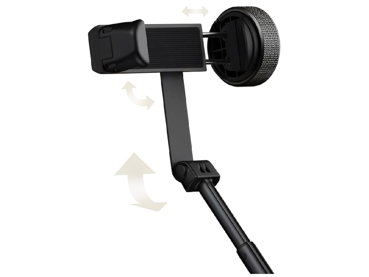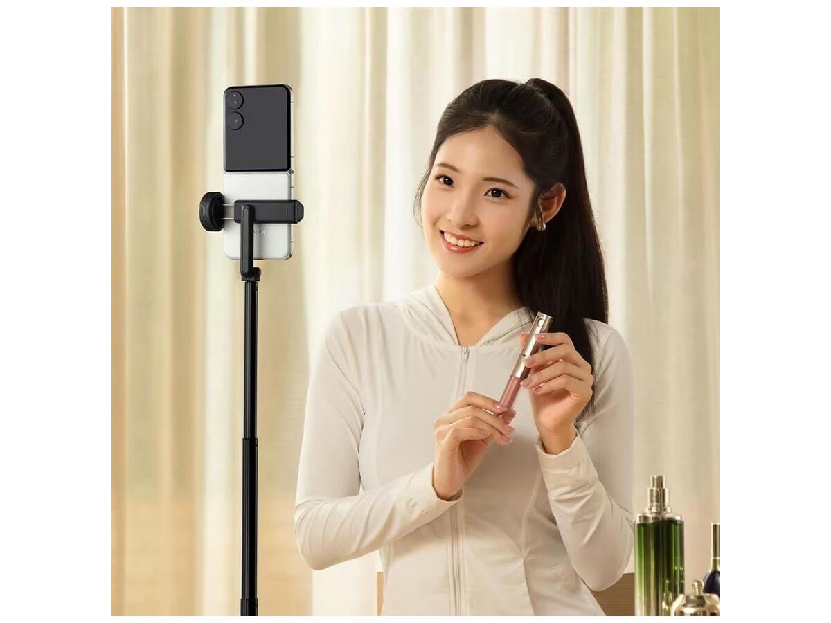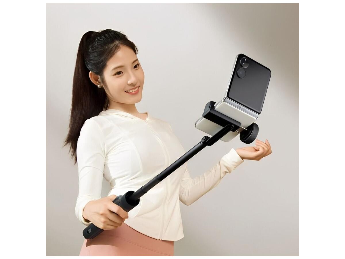 Вращающийся держатель смартфона дает свободу выбора ракурса – вертикального или горизонтального. Удобный Bluetooth-пульт дистанционного управления с магнитным креплением на ручке позволяет делать фото и видео одним нажатием, переключаться между камерами и использовать зум с точностью 0,1x.