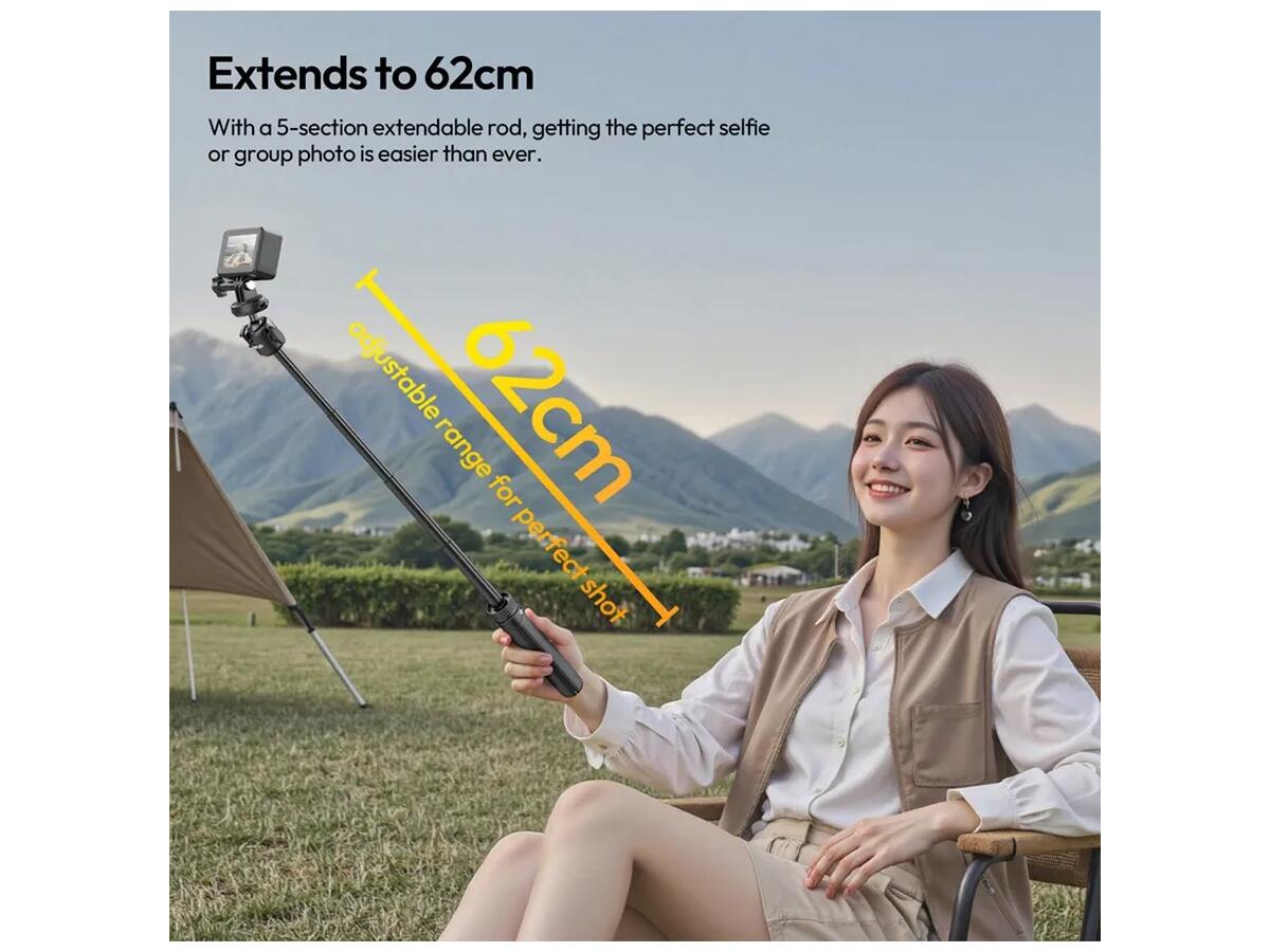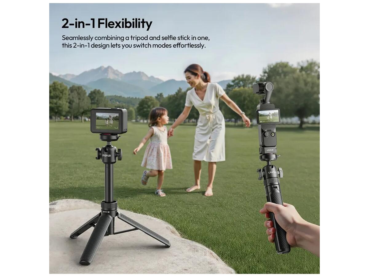 Этот легкий и удобный штатив от Ulanzi сочетает в себе функции классического трипода и селфи-палки, что делает его незаменимым аксессуаром для мобильной съемки и видеоблогинга. Модель MT90 оснащена пятисекционной телескопической штангой с надежными фиксаторами, позволяющими раздвигать штатив от 21.5 см до 62 см, что обеспечивает максимальную универсальность для съемки разных сцен.