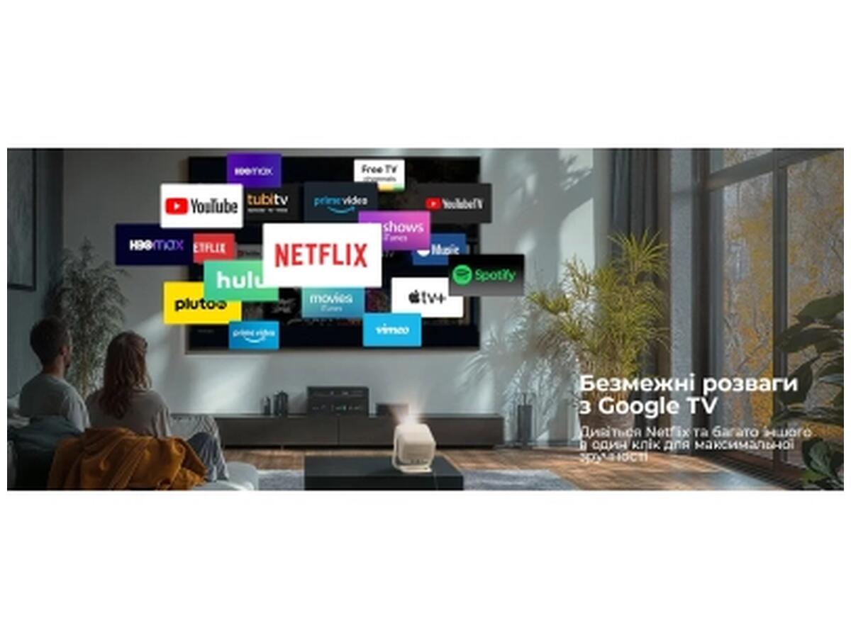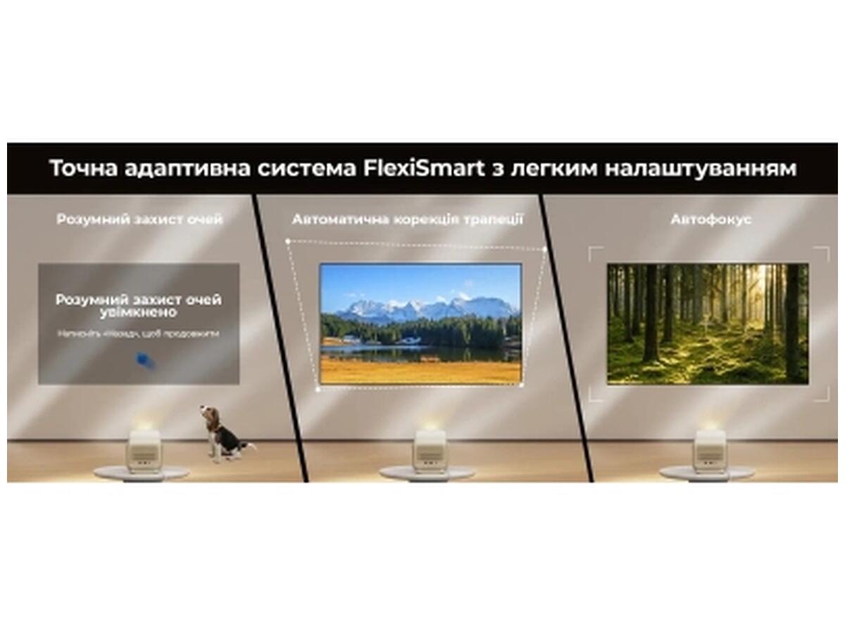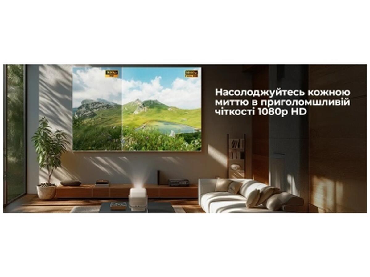 Лаконичный корпус в бежевом цвете органично вписывается в любой интерьер. Устройство легко переносить — вес всего 1.8 кг. Простое управление, реализованное через пульт и разнообразные порты подключения (HDMI, USB Type-C и другие), позволяет быстро интегрировать проектор с мультимедийными устройствами. Низкий уровень шума обеспечивает комфортный просмотр без отвлекающих звуков.