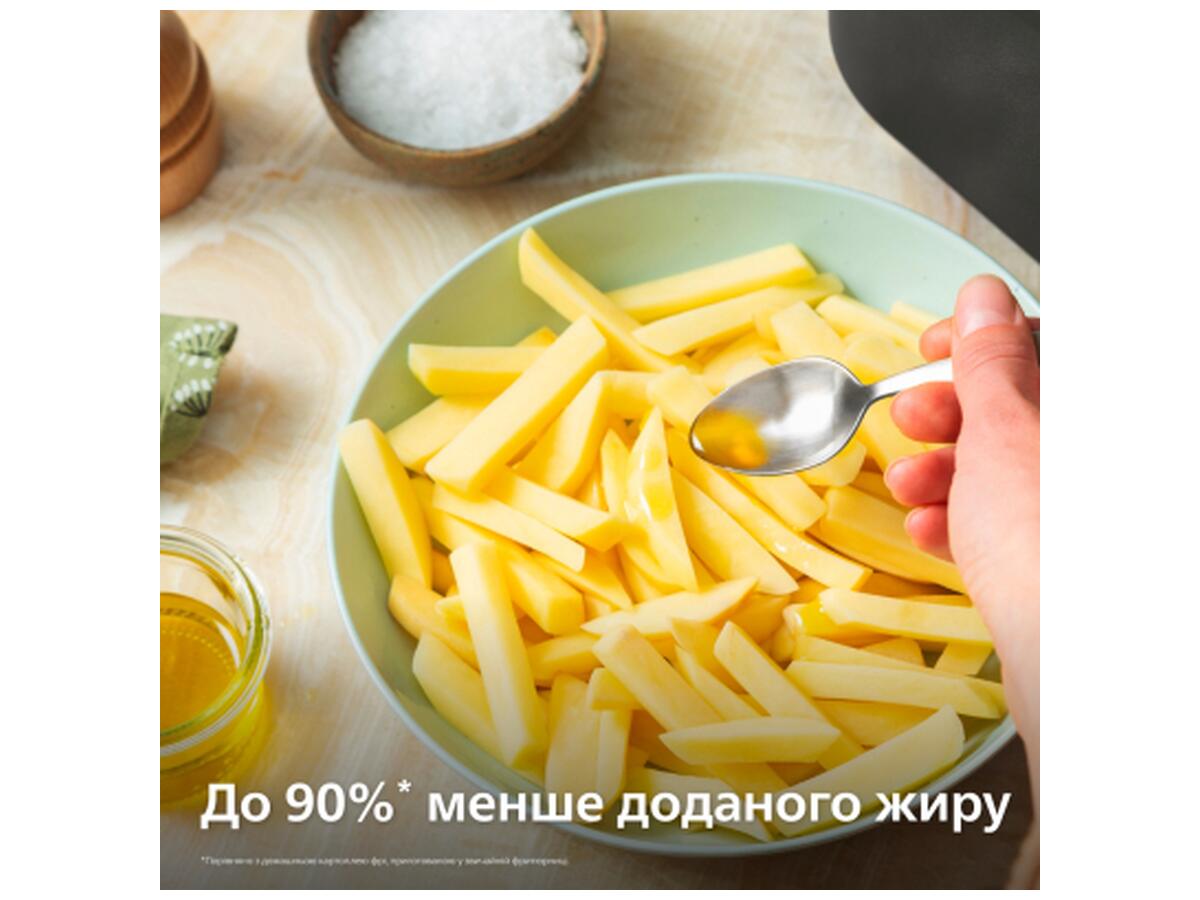 Инновационная система RapidAir быстро и равномерно распределяет горячий воздух, позволяя готовить с использованием до 90% меньше жира. Сенсорное управление и информативный дисплей обеспечивают простоту настройки и контроля рабочего процесса.