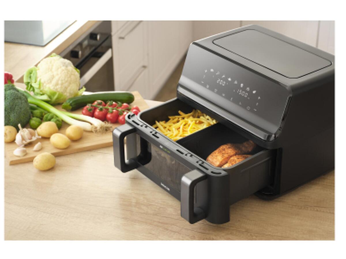 С этой мощной мультипечью мощностью 2700 Вт вы сможете легко и быстро готовить различные блюда с использованием минимального количества масла. Объём чаши на 9 литров позволяет приготовить сытные порции для всей семьи или компании. Широкий диапазон температур от 80 до 200 °С и электронное сенсорное управление дают вам полный контроль над процессом готовки.