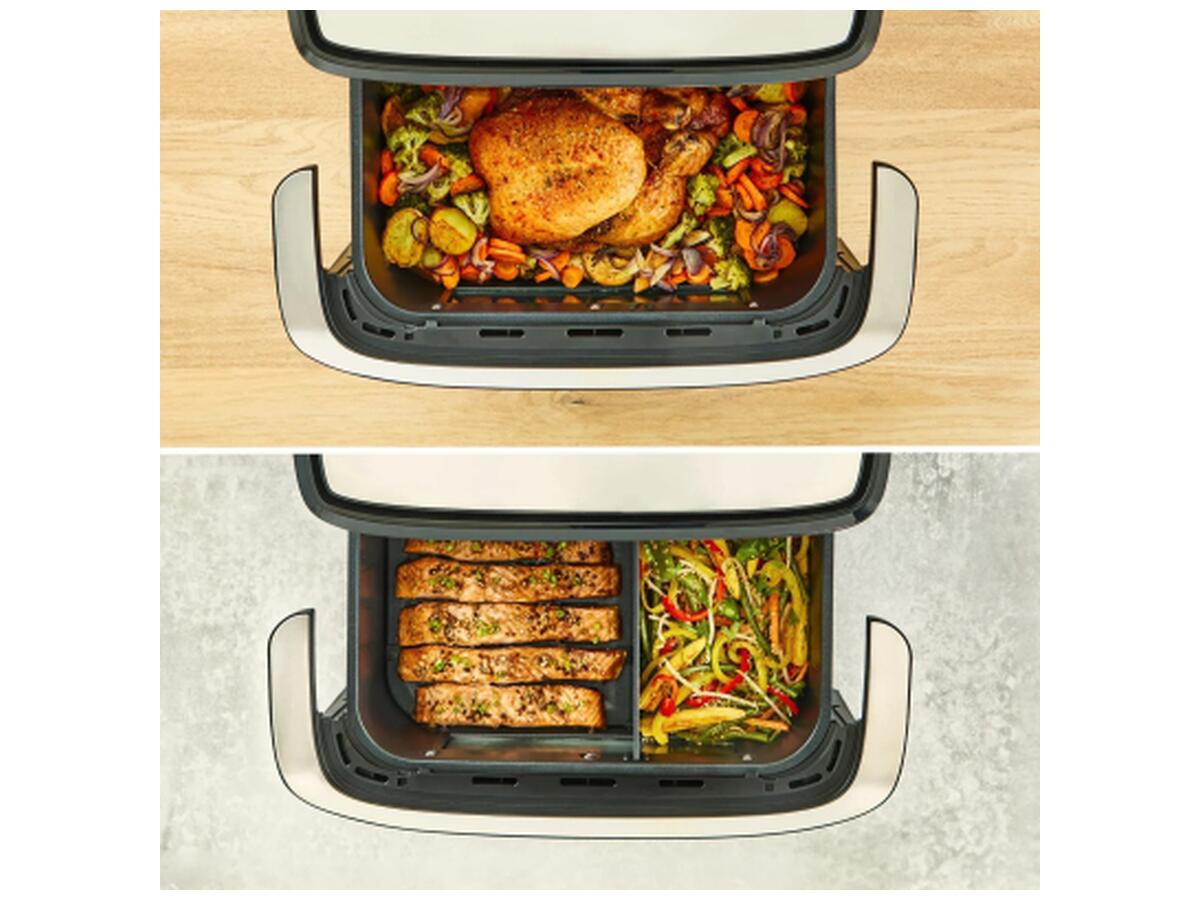 Оцените удобство и многофункциональность с мультипечью Tefal Dual Easy Fry Flex. Уникальный съемный разделитель FlexCook позволяет быстро менять устройство из двух независимых камер в одну просторную, емкостью до 9 литров, что дает свободу в выборе объемов и видов блюд одновременно.