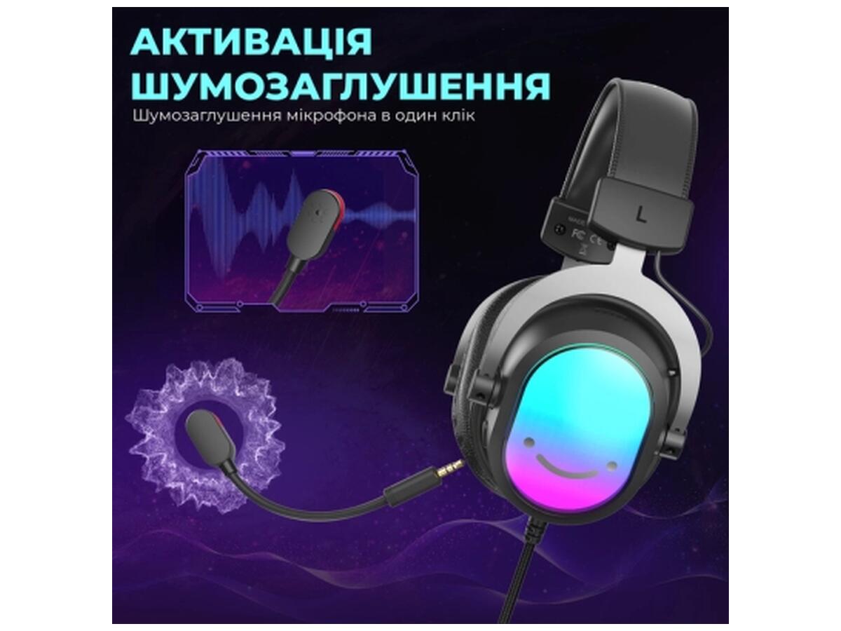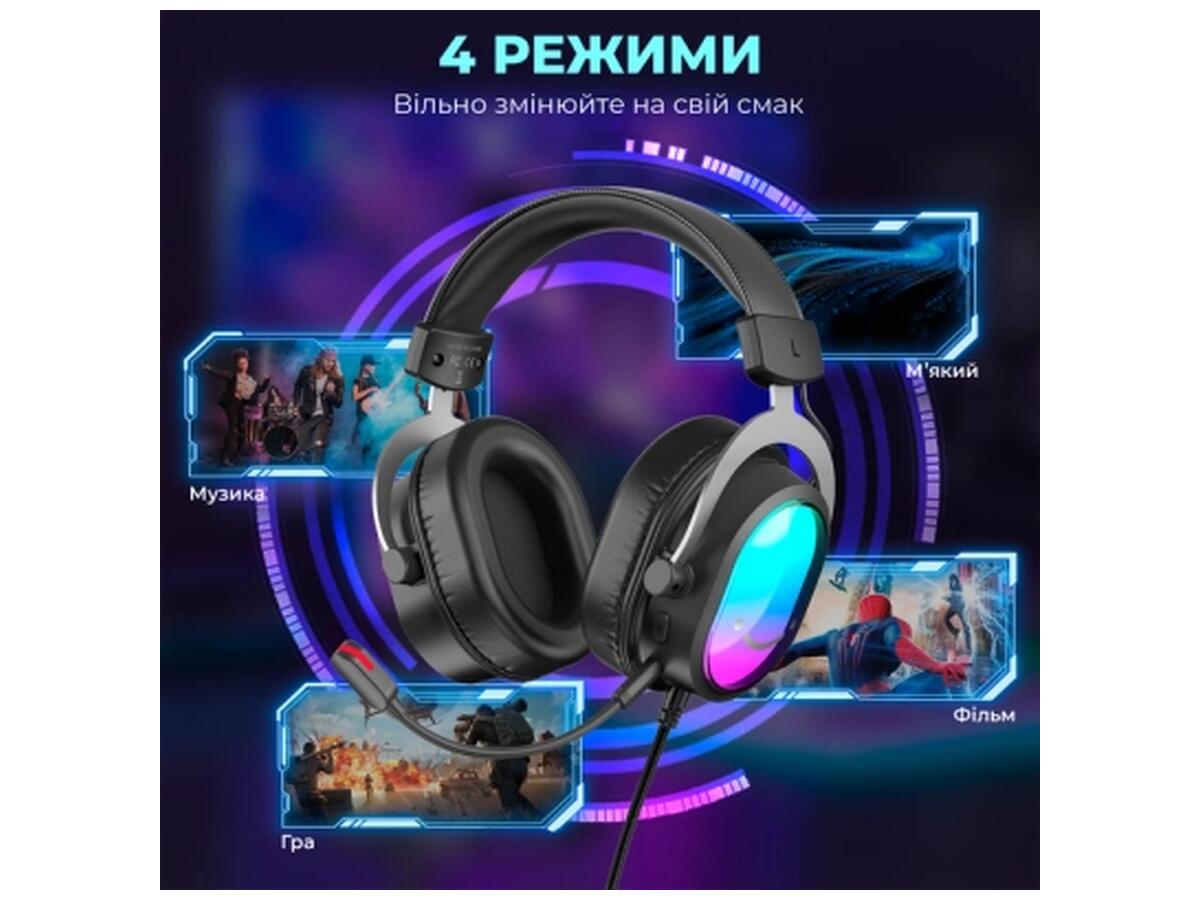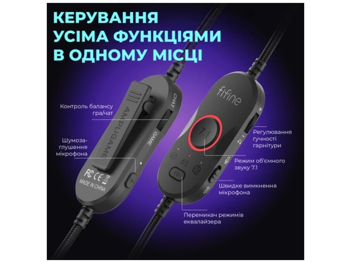 Fifine H16 выделяется оригинальной RGB подсветкой с 11 эффектами, которая добавит ярких красок вашему игровому пространству. Управление звуком и микрофоном удобно расположено на шнуре длиной 2,2 метра, обеспечивая быстрый доступ к настройкам.