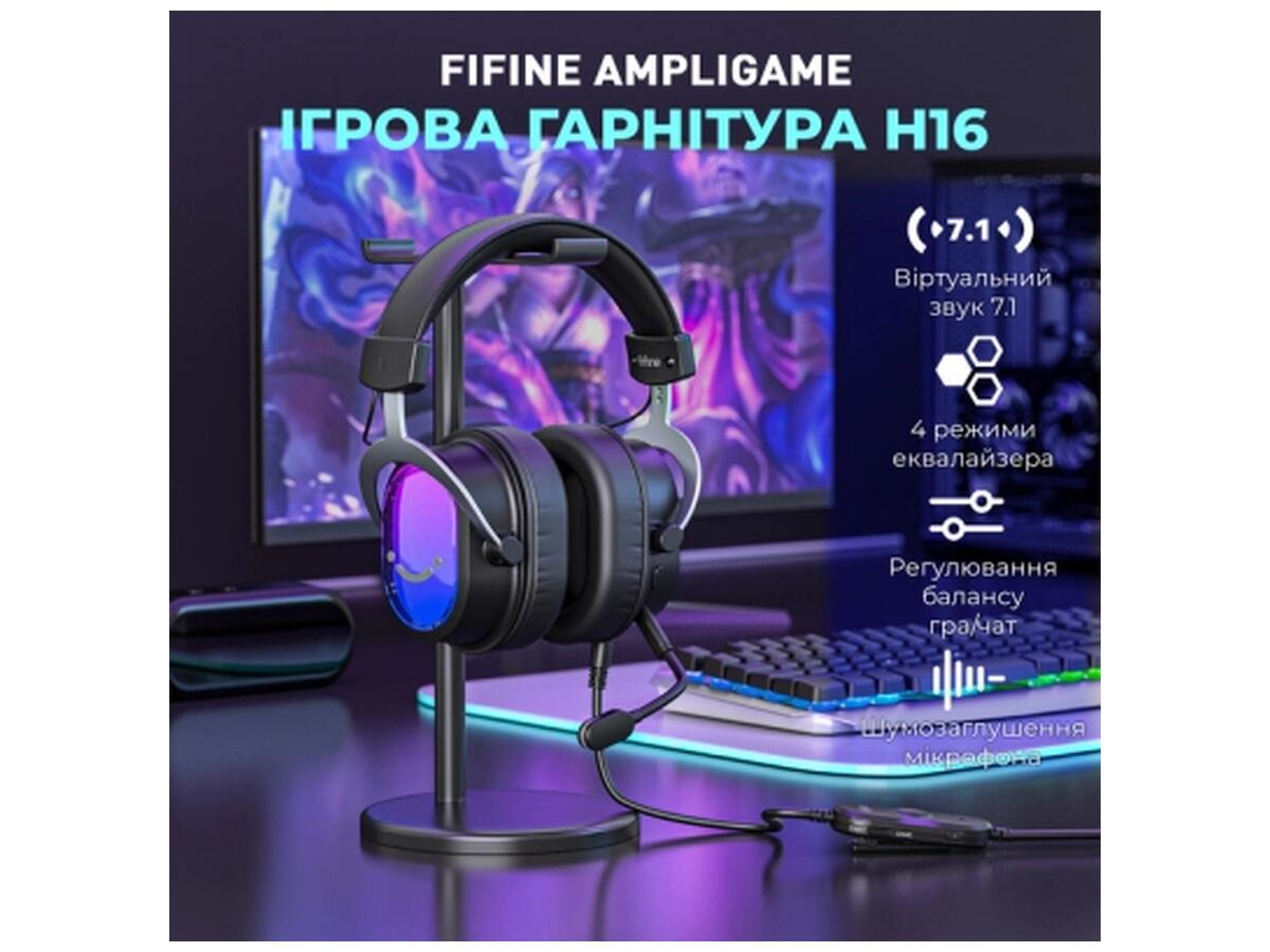 Наушники Fifine H16 7.1 RGB Black (H16)