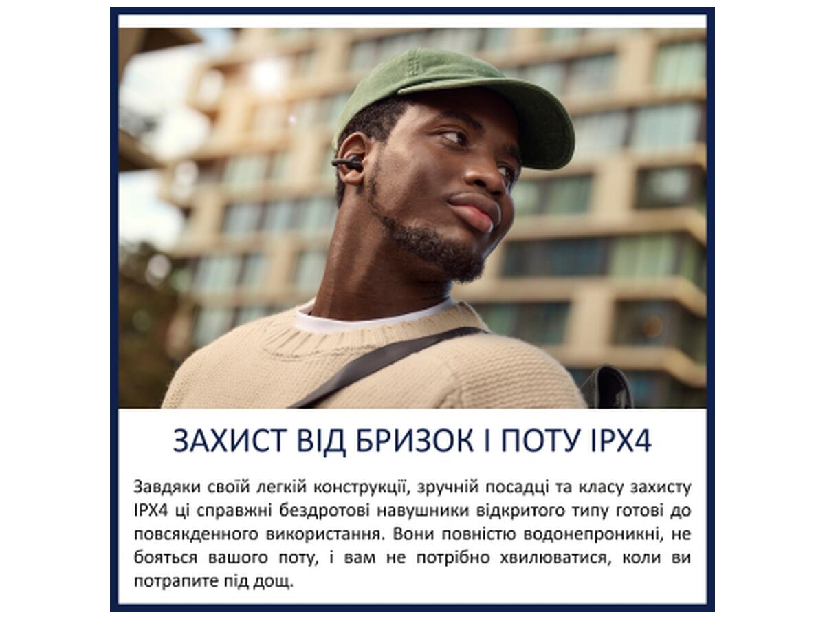 Класс защиты IPX4 обеспечивает устойчивость к брызгам и поту, что делает наушники отличным выбором для активного образа жизни. Изделие изготовлено из переработанных материалов с экологической сертификацией, а упаковка выполнена из переработанного картона с экологически чистыми чернилами.