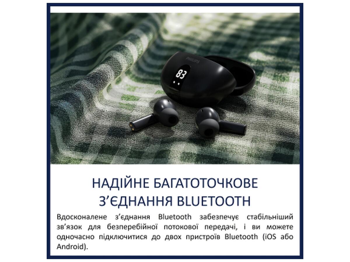 Приложение Philips Headphones позволяет персонализировать звук, активировать динамические басы и управлять функциями наушников. Эко-дизайн и экологичная упаковка делают эту модель достойным выбором с заботой об окружающей среде.