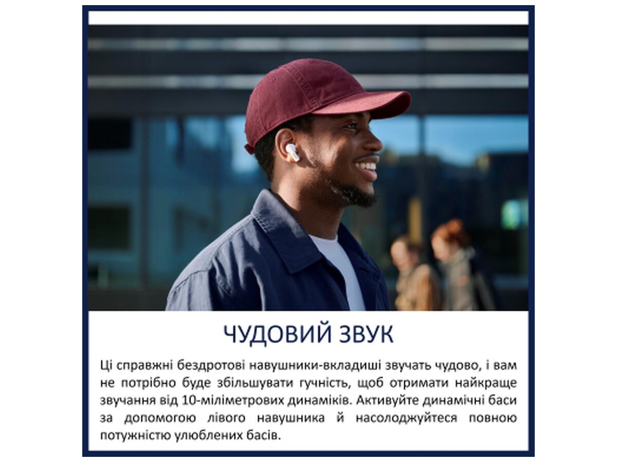 Общее время работы до 20 часов с зарядным кейсом USB-C позволит слушать музыку в течение всего дня. Устройство изготовлено из переработанных материалов и поставляется в экологичной упаковке.