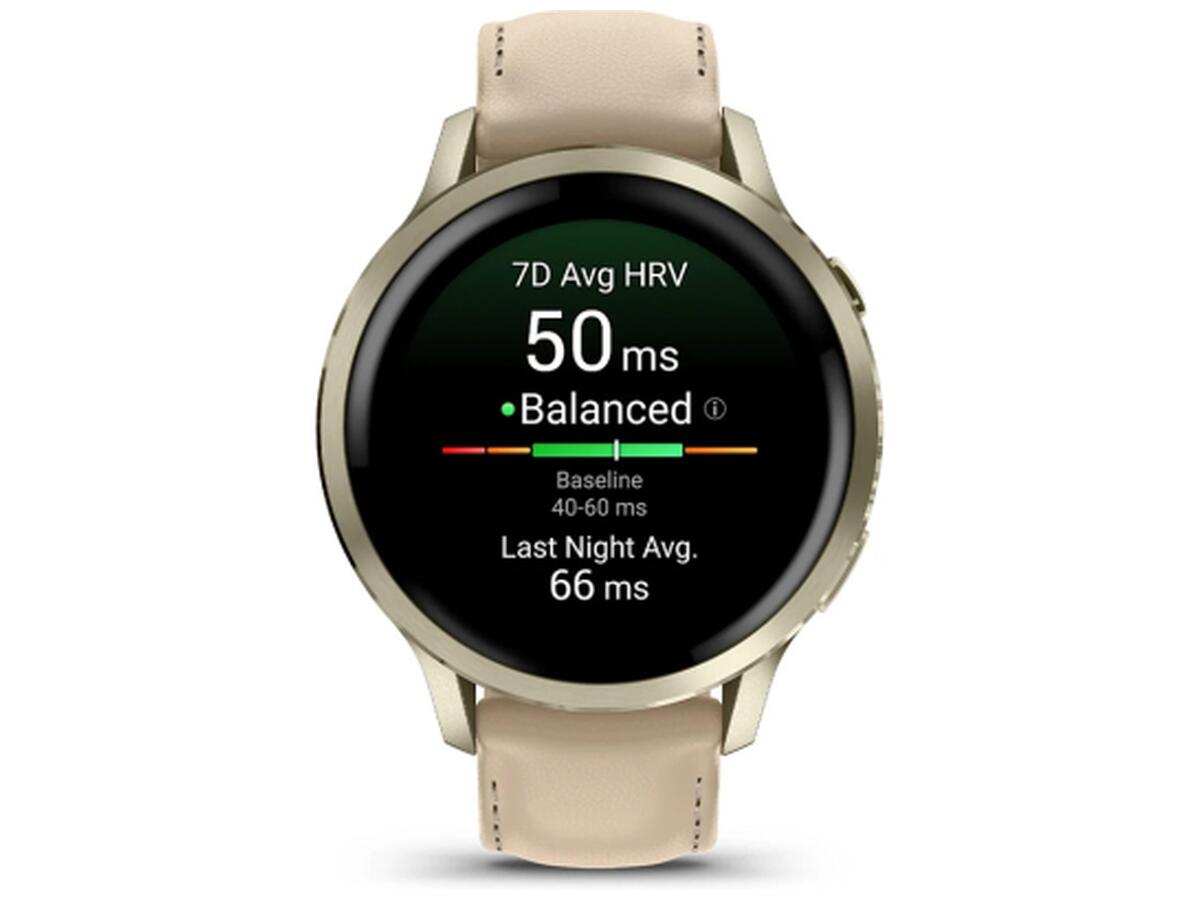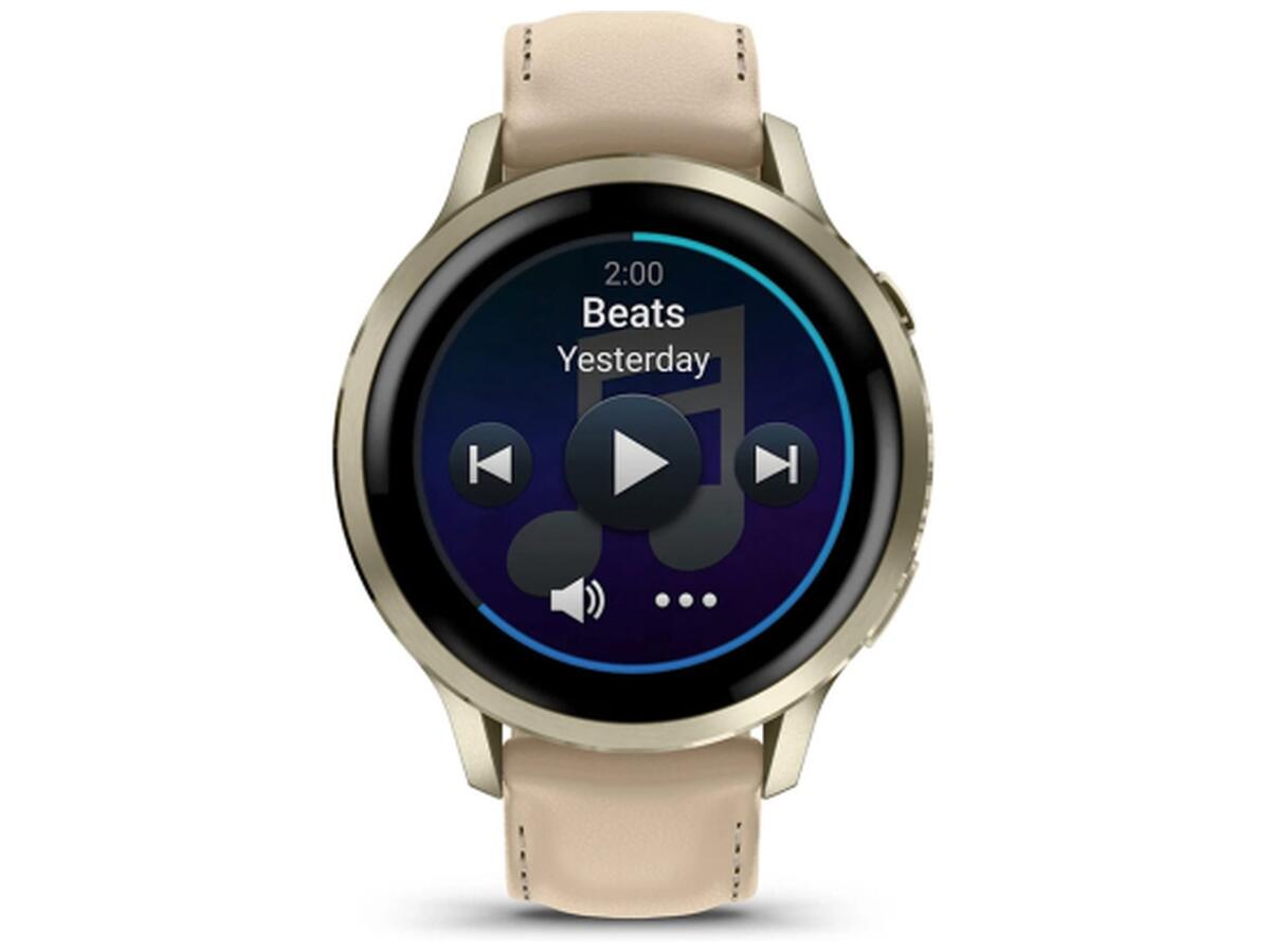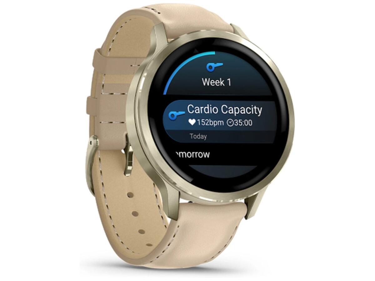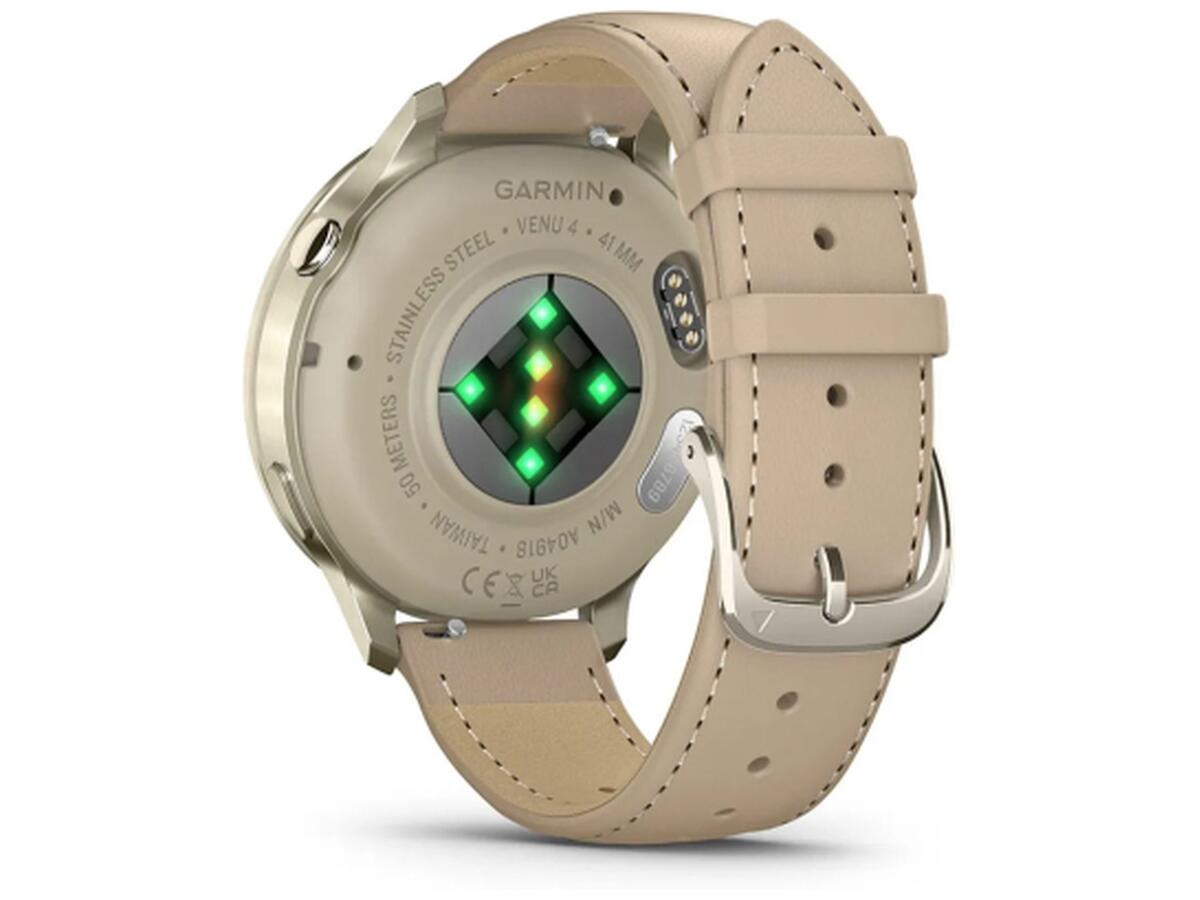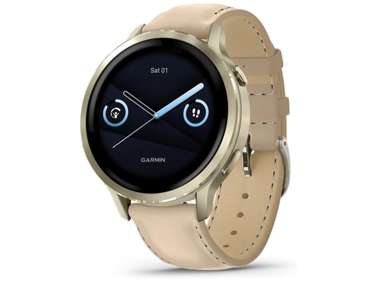 Смарт-часы Garmin Venu 4 (41mm), Beige w/ Lunar Gold + Leather, GPS (010-03013-03)