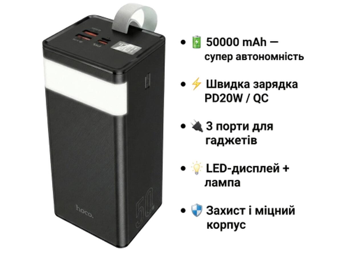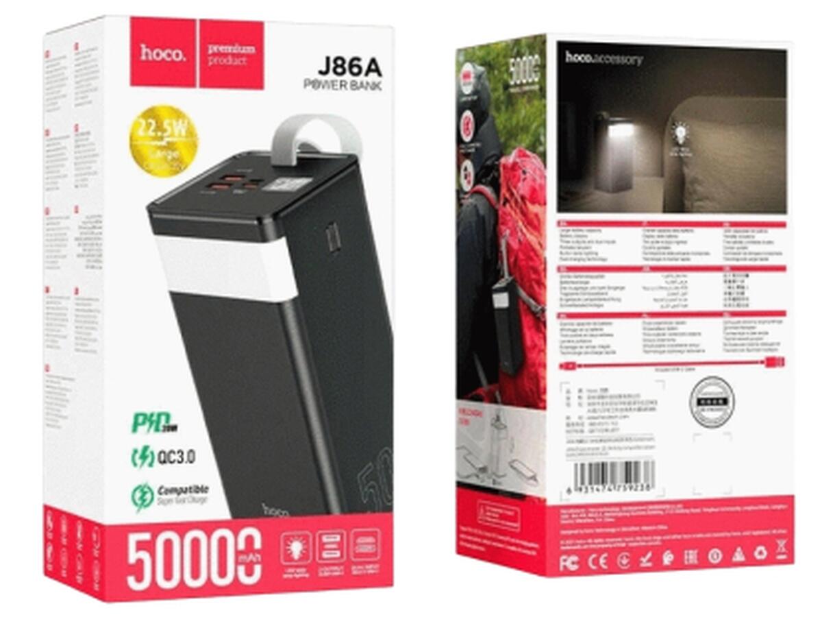 Батарея универсальная HOCO 50000mAh Powermaster PD/20W, QC/22.5W, Lamp, Black (J86A / 714738)
