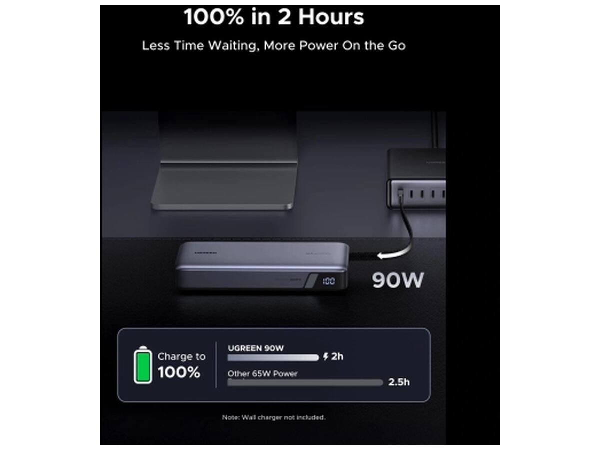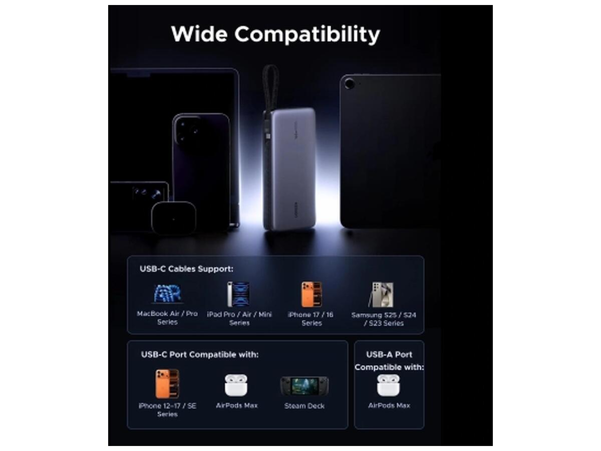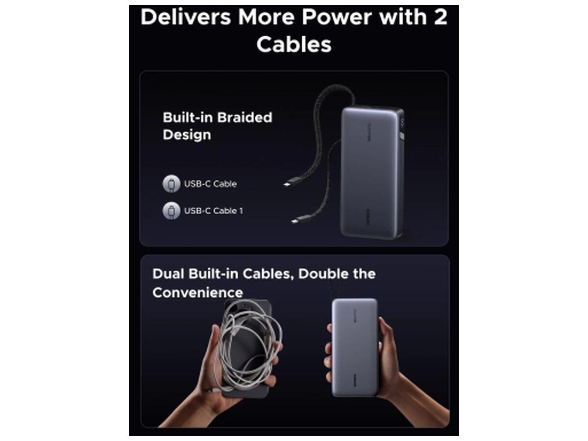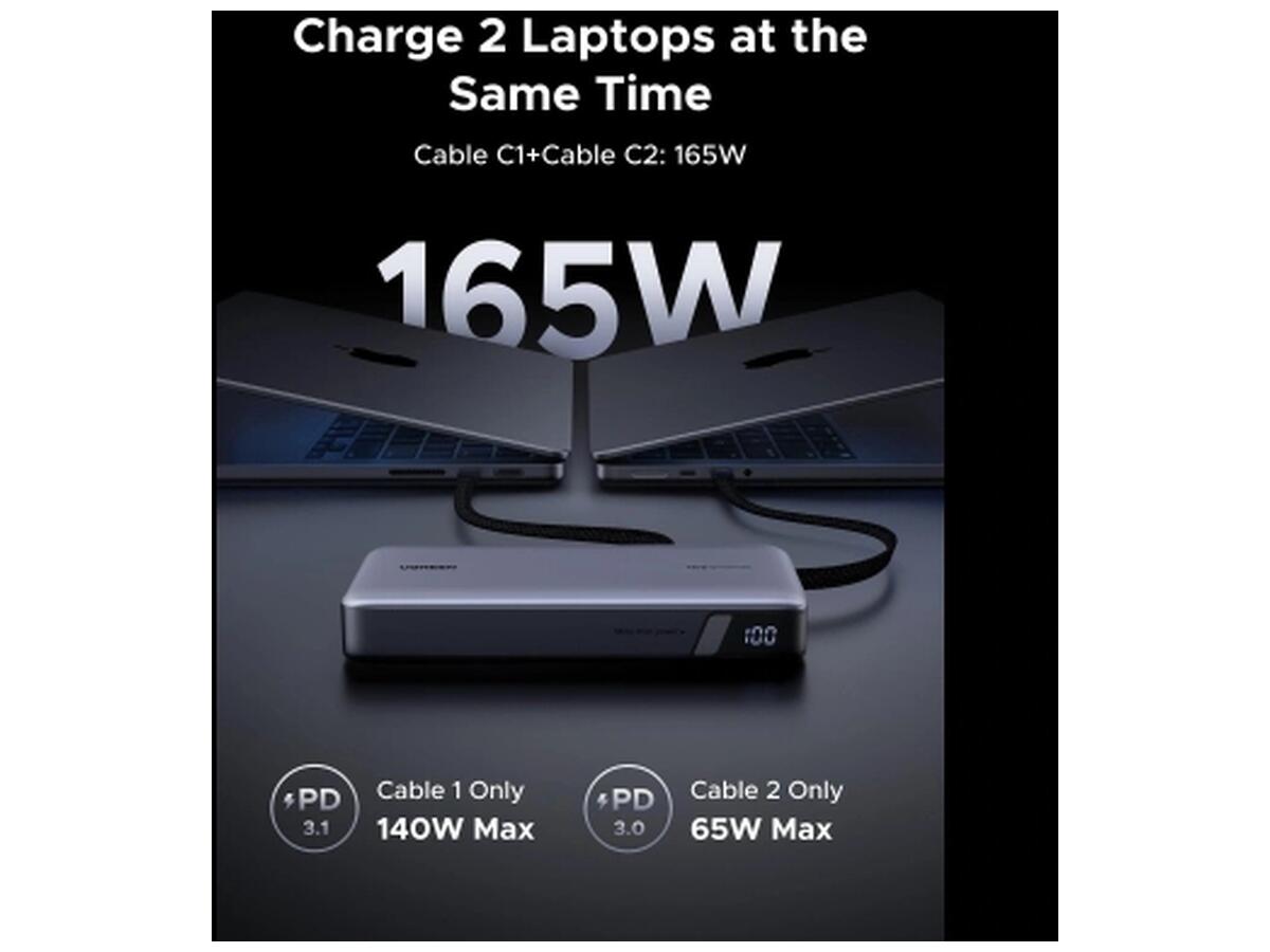 Батарея универсальная Ugreen 25000mAh 165W DualCable (PB552 55995B)