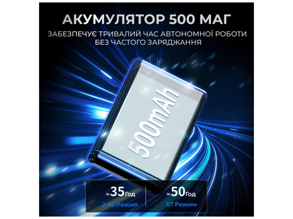 - Встроенный аккумулятор 500mAh обеспечивает длительную автономную работу, а ножки из PTFE гарантируют плавное скольжение.
