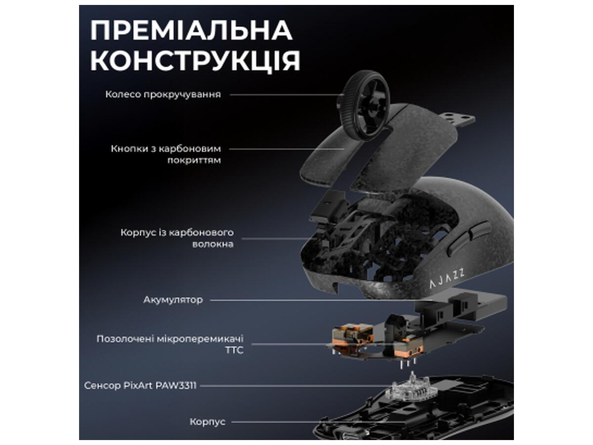 Мышка Ajazz AJ199 Carbon fiber Wireless/Bluetooth/USB Black (AJ199-B)