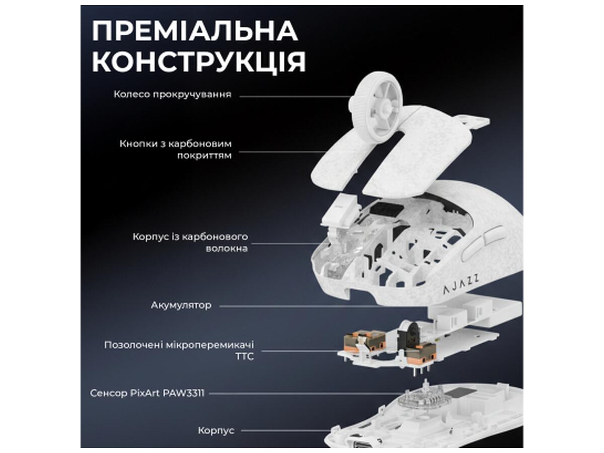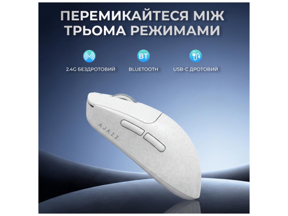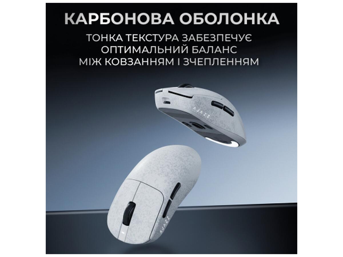 Мышка Ajazz AJ199 Carbon fiber Wireless/Bluetooth/USB White (AJ199-W)