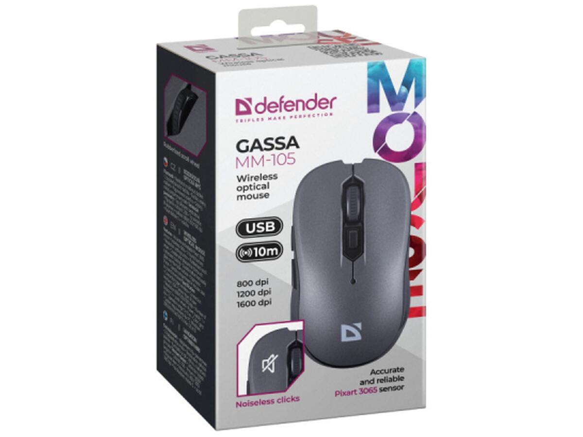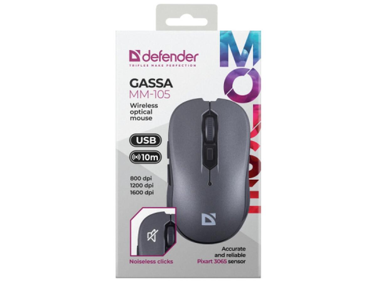 Мышка Defender Gassa MM-105 Wireless Silent Grey (52104)