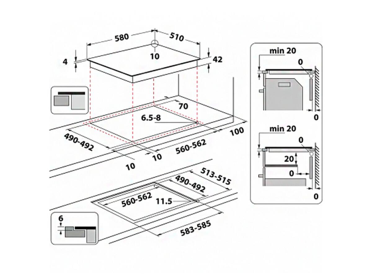 Размеры ниши для встраивания: 4.2 х 56 х 49 см