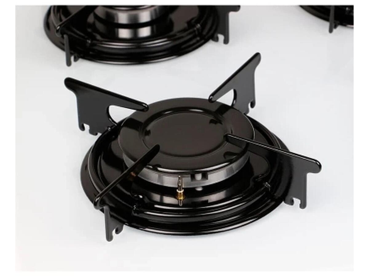 Основа панели — из закалённого стекла, легко очищаемая и устойчивая к повреждениям, что сохранит внешний вид надолго. Надежные решетки из эмалированной стали предоставляют прочную и эстетичную опору для посуды.