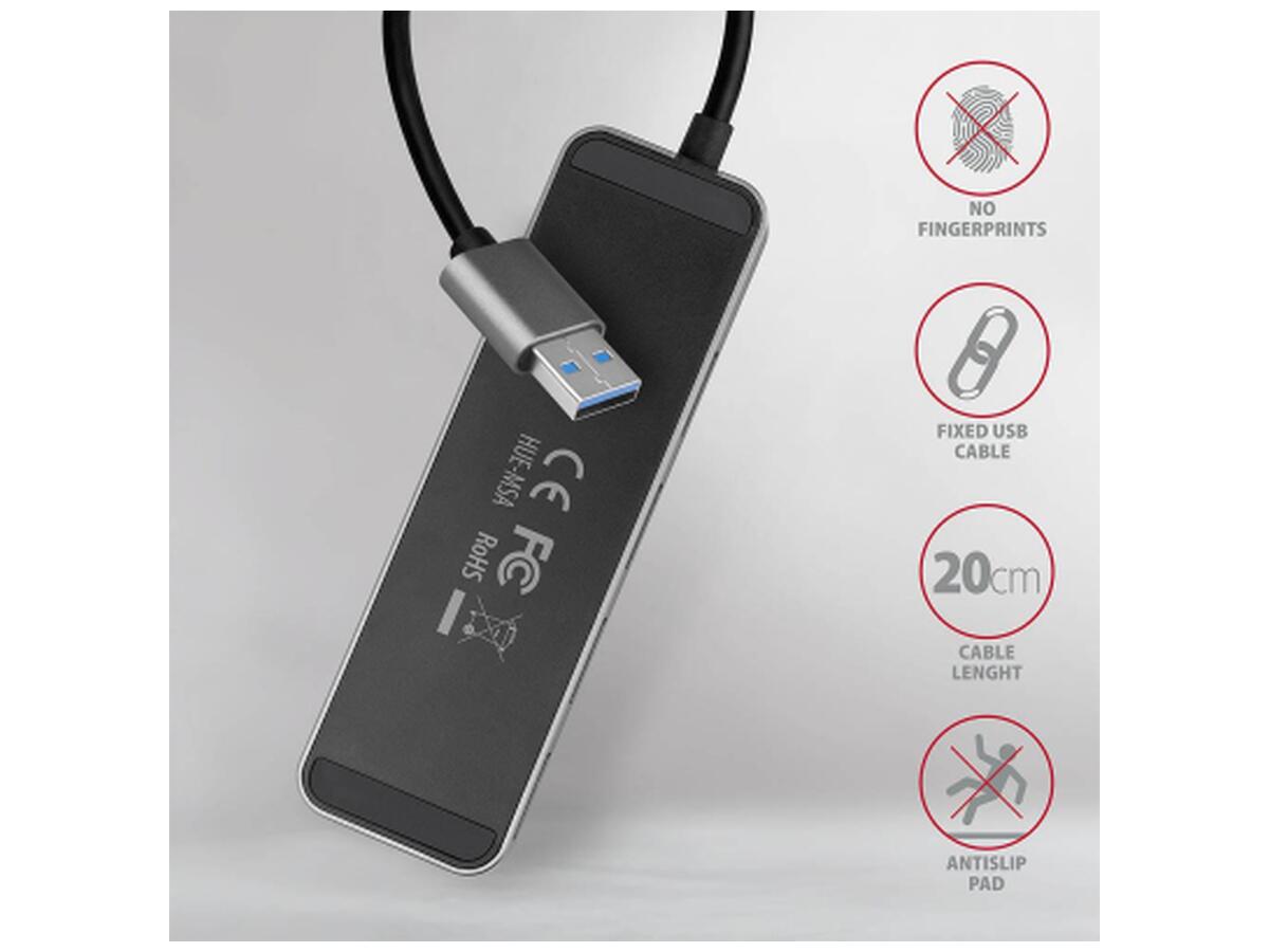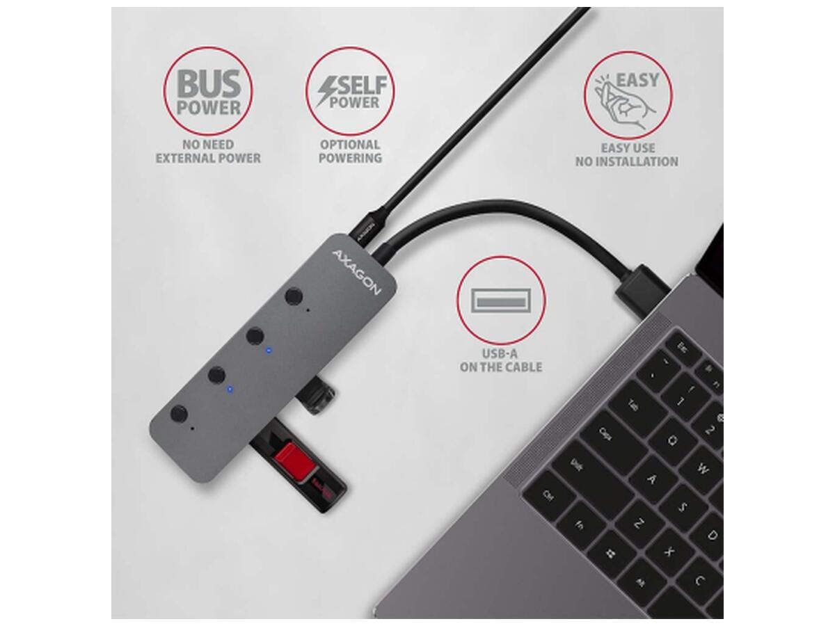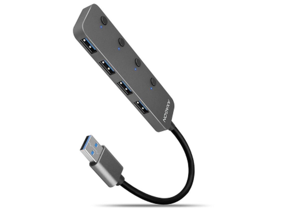 Концентратор AXAGON USB 3.1 to 4xUSB 3.0 0.2m switch black (HUE-MSA)