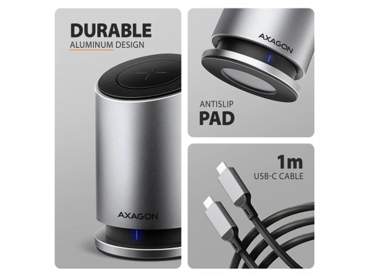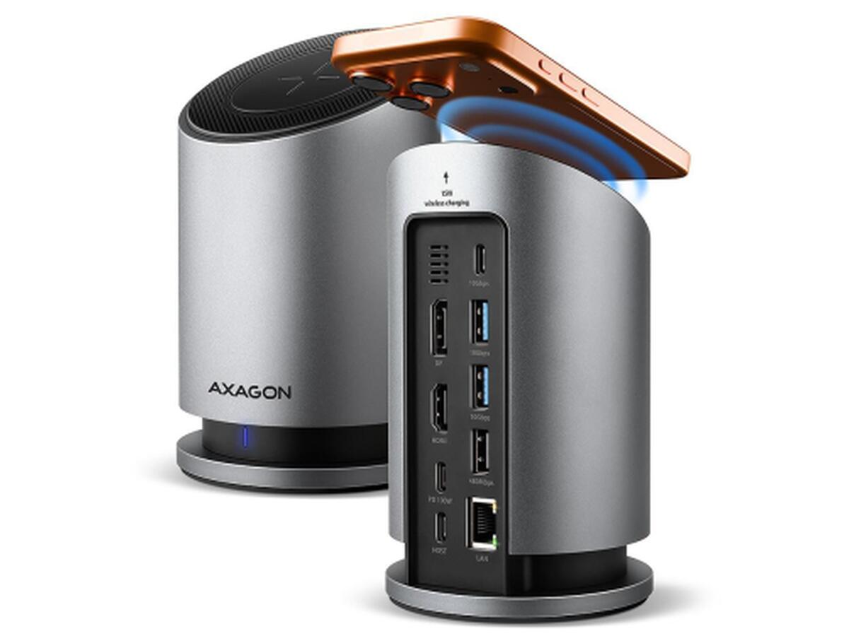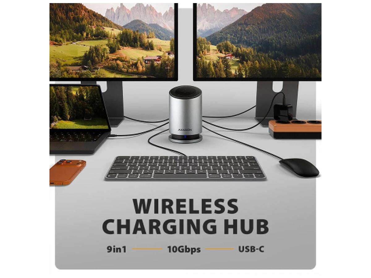 Концентратор AXAGON USB-C 9-в-1 с поддержкой беспроводной зарядки и PD100W