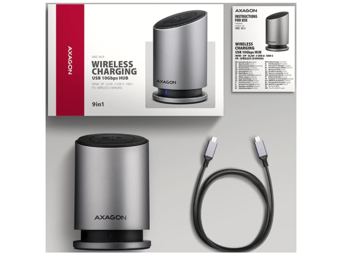 Концентратор AXAGON USB-C 9-in-1 wireless 15W PD100W 0.6m (HMC-WL9)