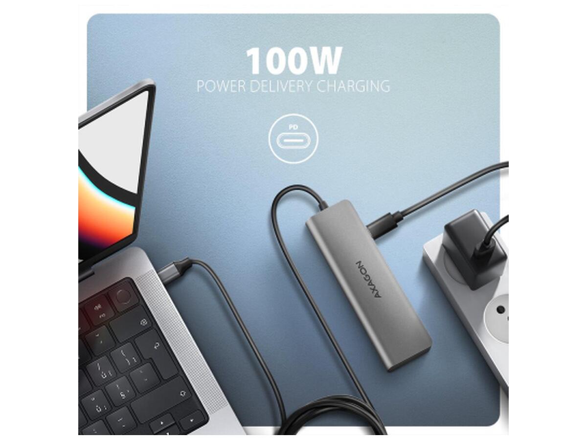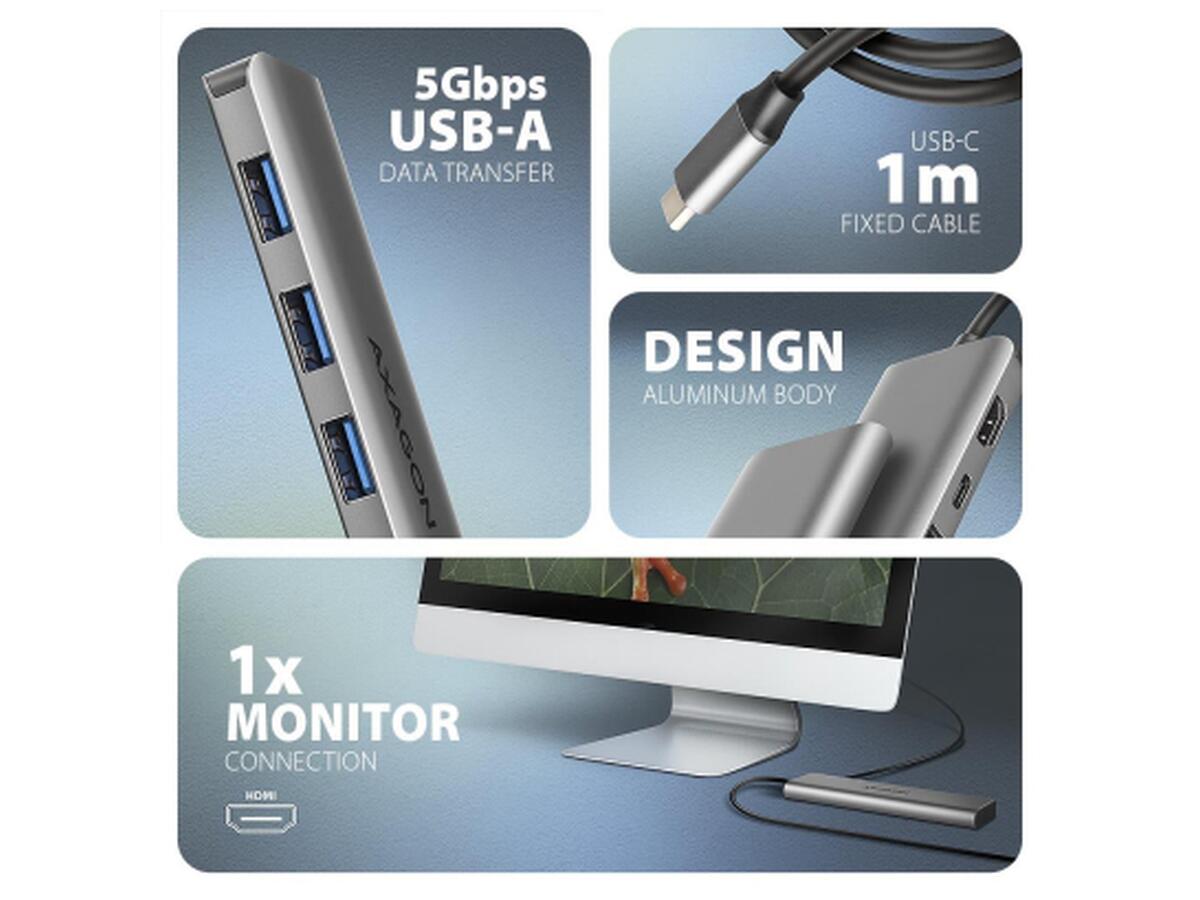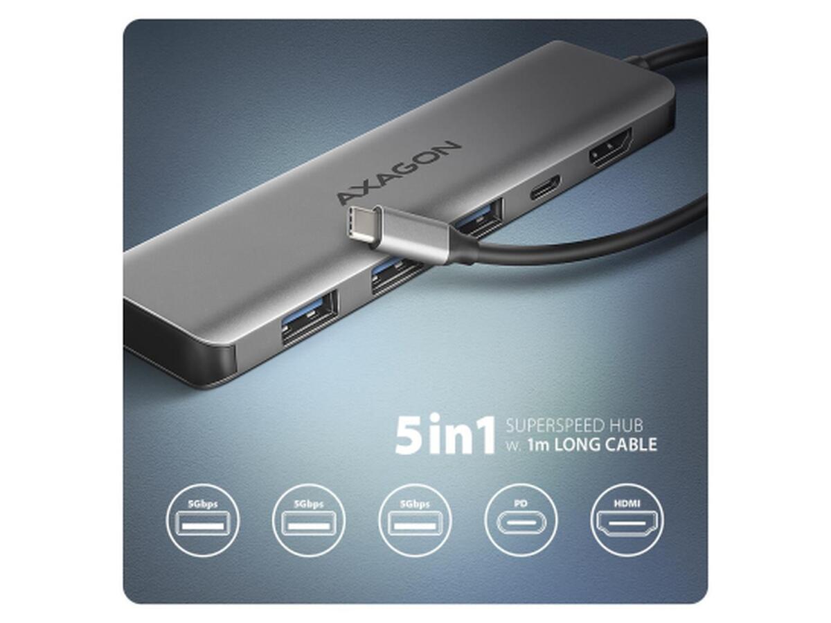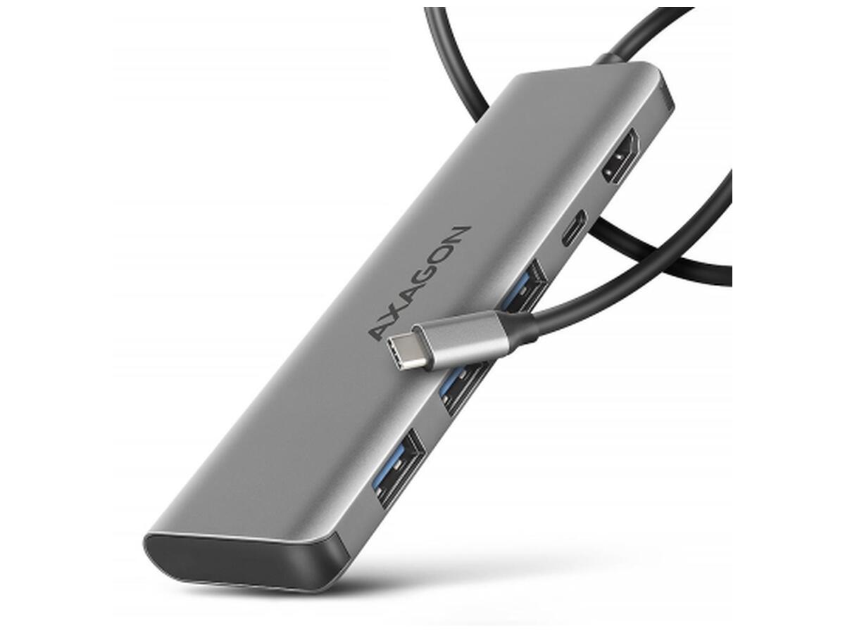 Концентратор AXAGON USB-C to 3xUSB-A + HDMI 5Gbps + PD 100W 1.0m grey (HMC-5H)