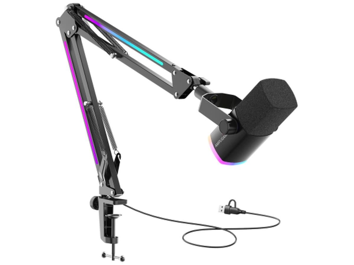Создайте уникальную визуальную атмосферу с помощью синхронизированной подсветки микрофона и стойки.