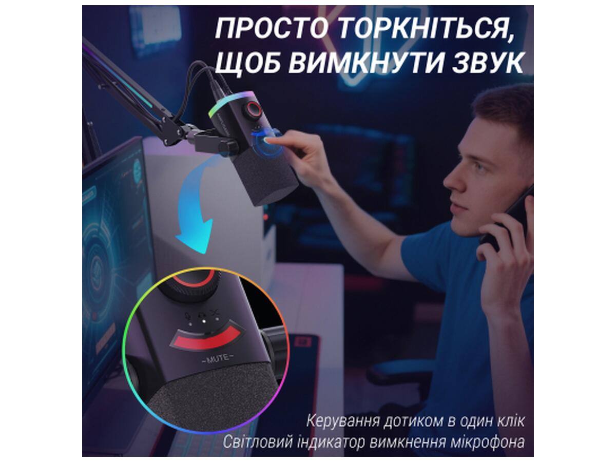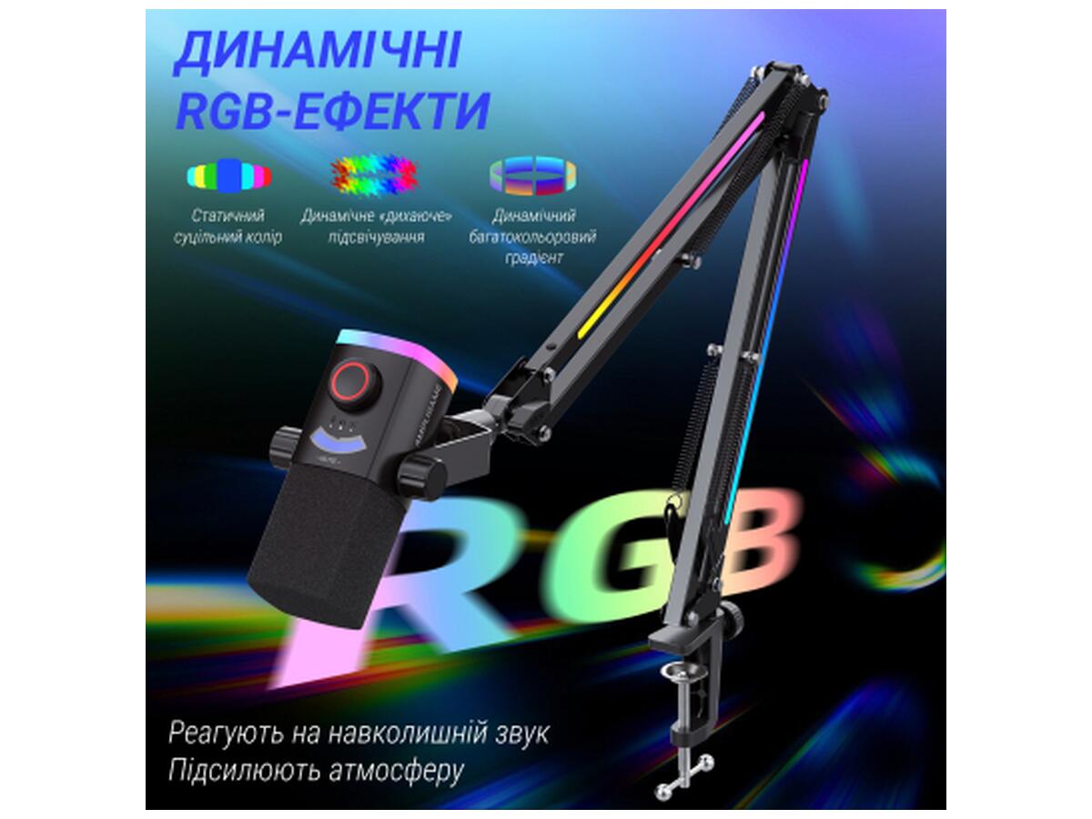 Создавайте уникальную визуальную атмосферу с помощью палитры с более чем 160 миллионов цветов и эффектов. Настраивайте подсветку микрофона, стойки или гарнитуры так, как того требует ваш контент или настроение.