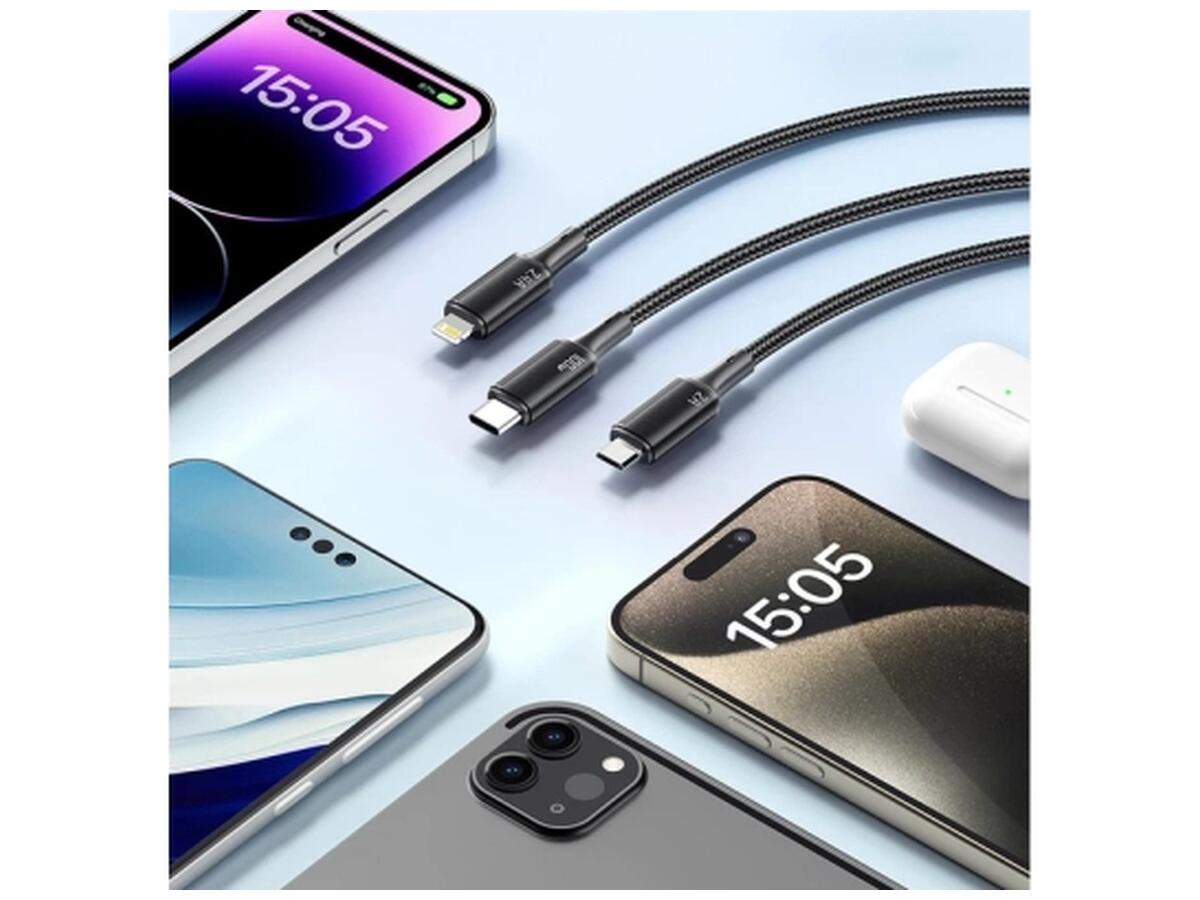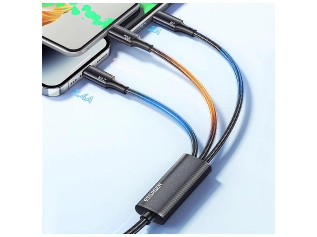 Дата кабель USB 2.0 AM to Lightning + Micro 5P + USB-C 1.2m 100W Essager (EXCMTL-JJ01-P)