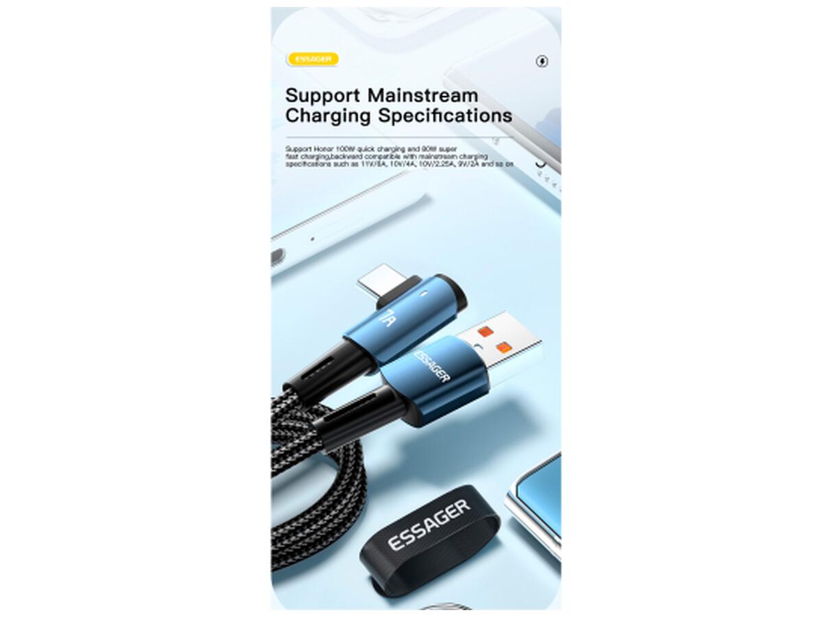 USB-кабель Essager Sunset Bend USB-A - Type-C 100w 7a 2м cable относится к категории кабели зарядные, синхро-зарядные, для быстрой зарядки. Он отлично подходит для телефонов, для планшетов, если нужно подключить мобильный телефон или планшет и десктоп или ноутбук. Но это не значит, что вы не сможете подключить USB-шнур к другим устройствам, при наличии соответствующих входов с этим не возникнет проблем. Кроме того, он практически незаменим при зарядке аккумулятора.
