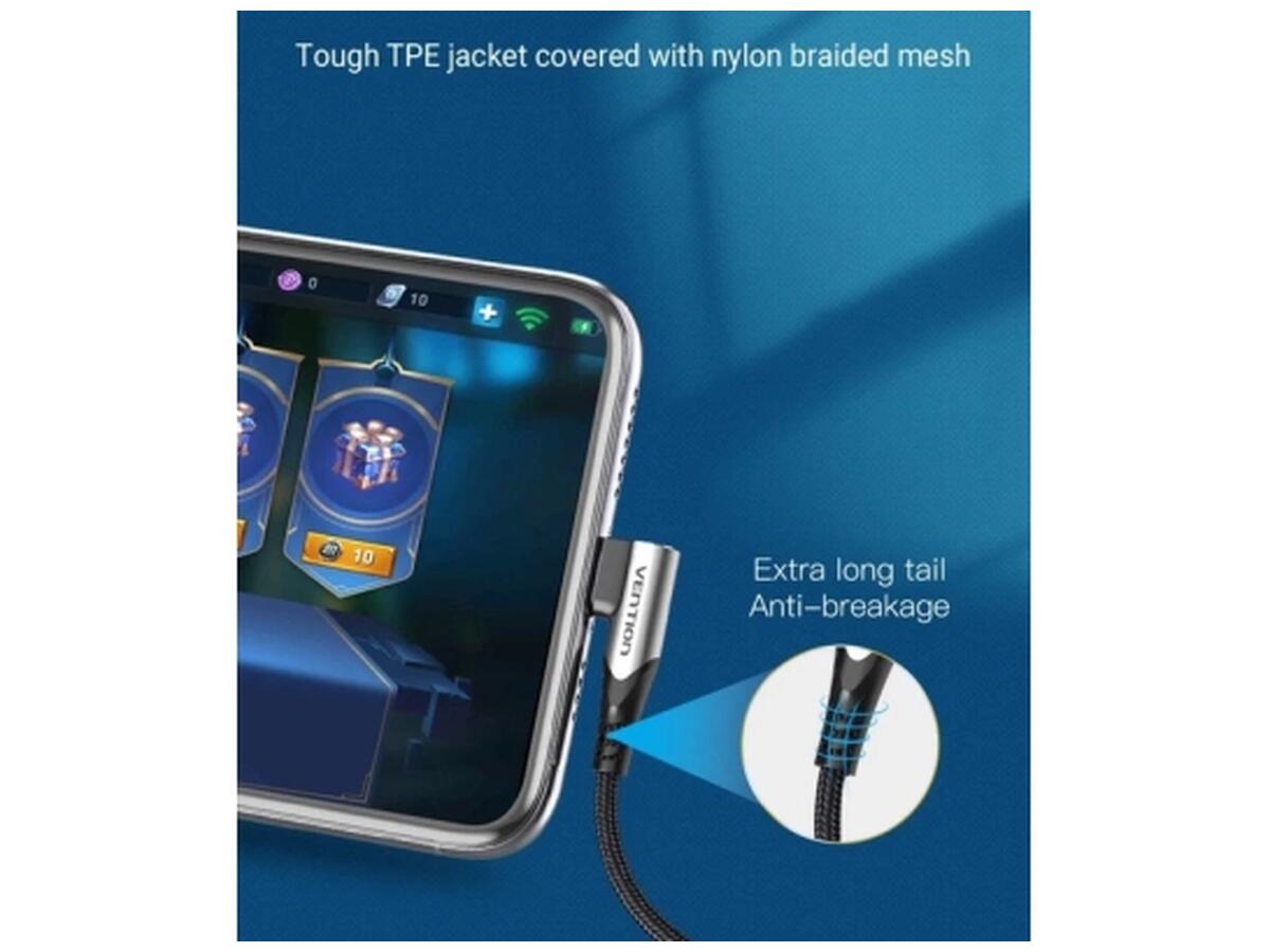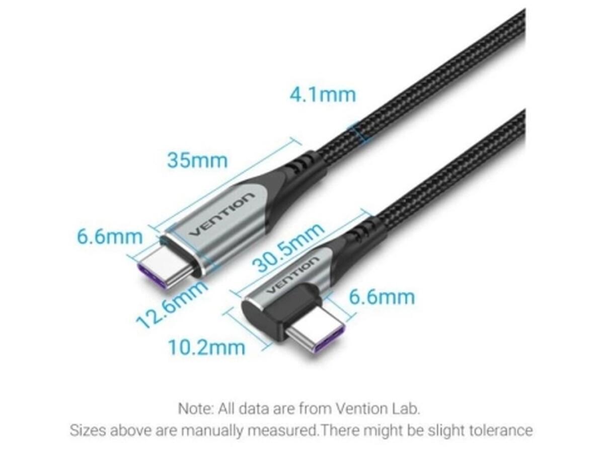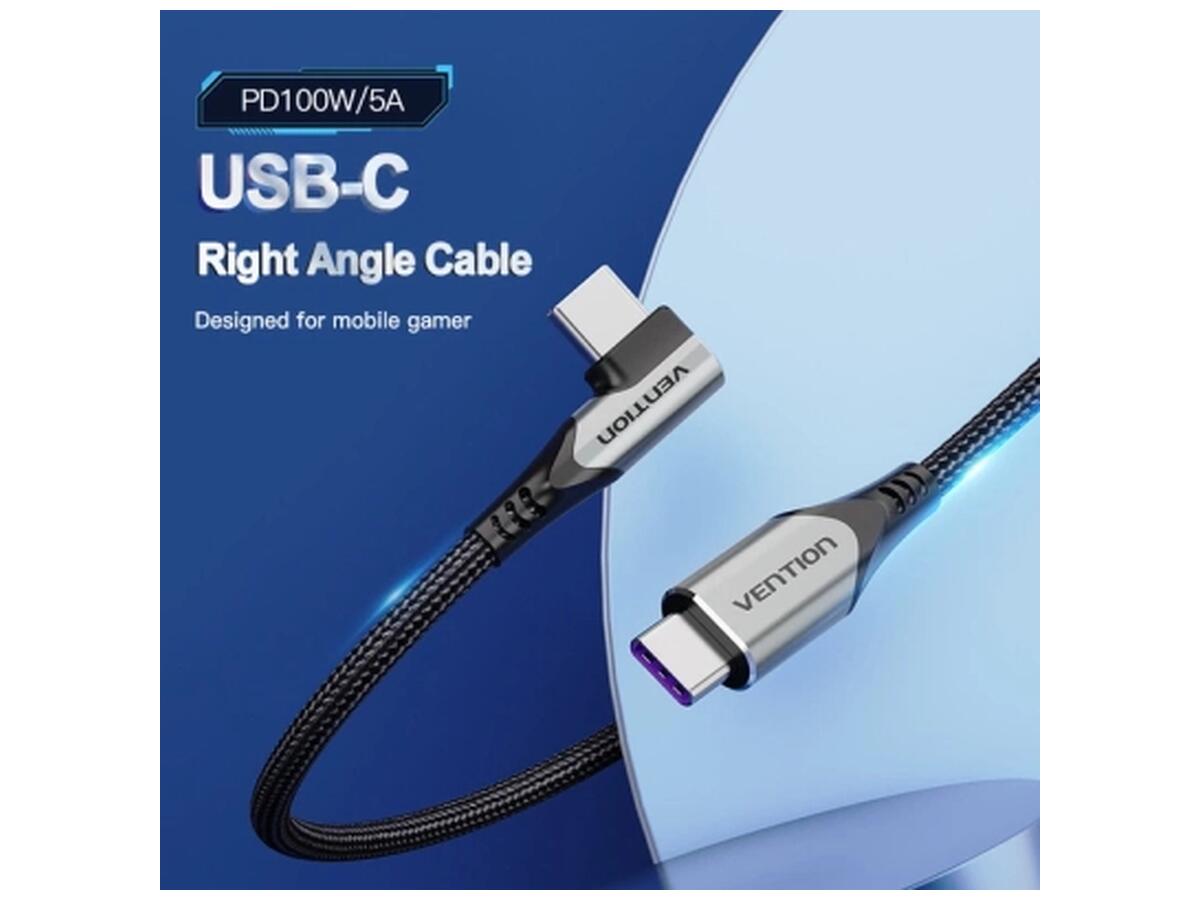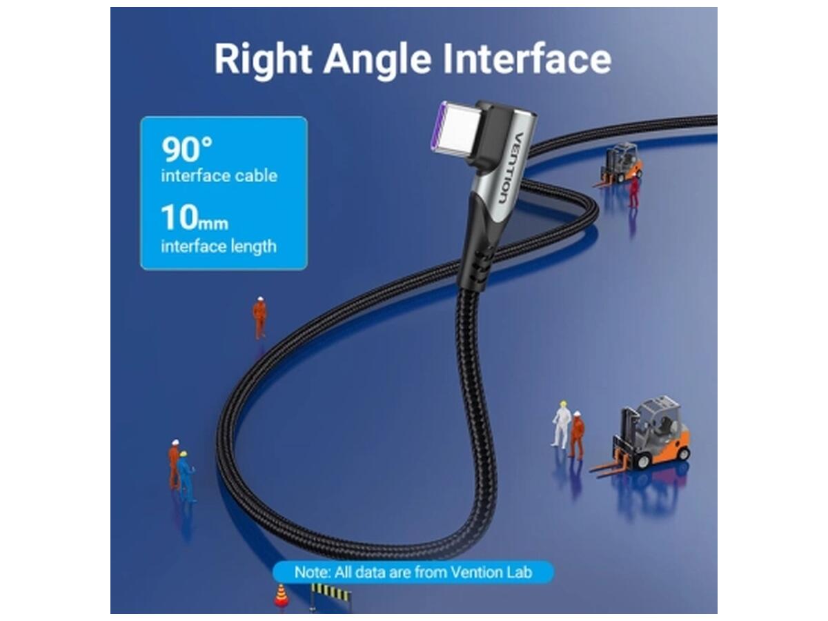 Дата кабель USB-C to USB-C 1.0m 5A 90° corner aluminum gray Vention (TAKHF)