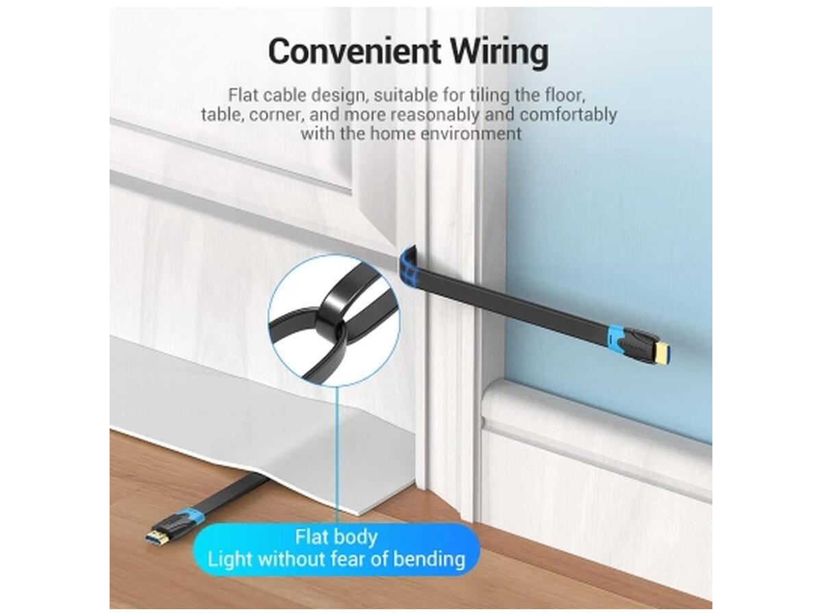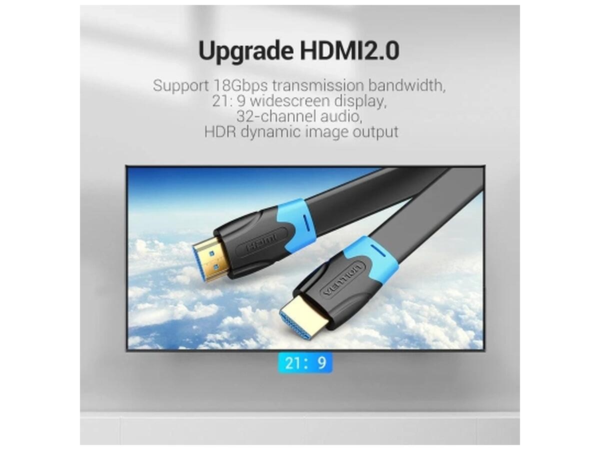 Кабель мультимедийный HDMI M to HDMI M 1.0m 4K60Hz flat black Vention (AAKBF)
