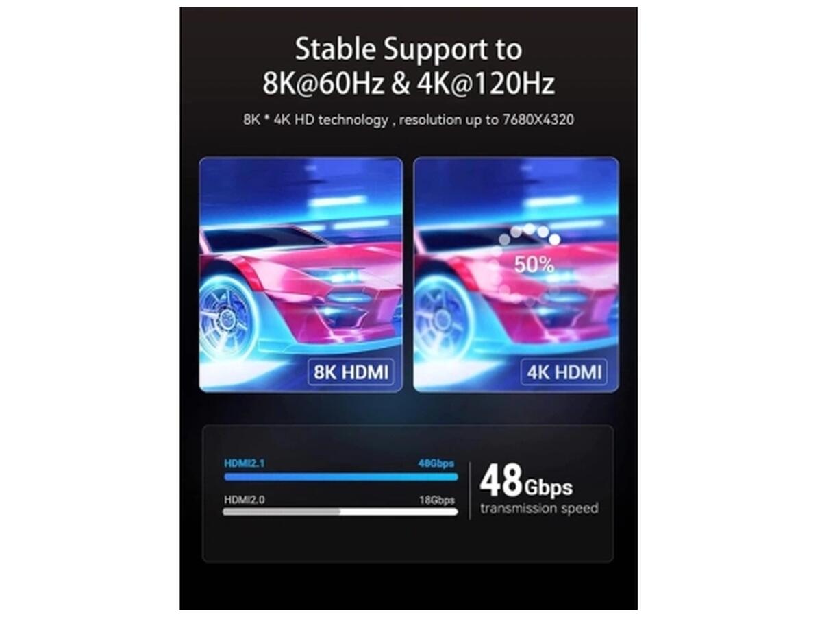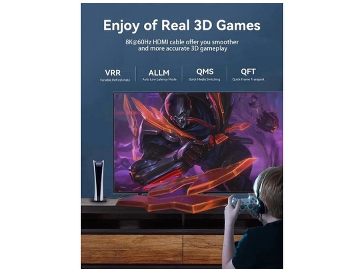 Обеспечивает поддержку разрешения до 8K при 60 Гц, что делает изображение невероятно четким и детализированным. Благодаря улучшенной пропускной способности до 48 Гбит/с, кабель подходит для передачи больших потоков данных с максимальной скоростью.