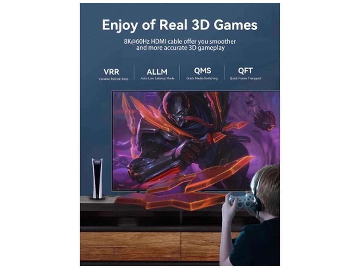 Кабель обладает рядом преимуществ, включая поддержку динамического HDR для ярких и реалистичных цветов, а также передачу 3D-изображения для создания эффекта глубины. Функция eARC позволяет передавать аудиосигналы высокого качества между телевизором и звуковыми устройствами по одному кабелю, упрощая подключение и повышая качество звука.