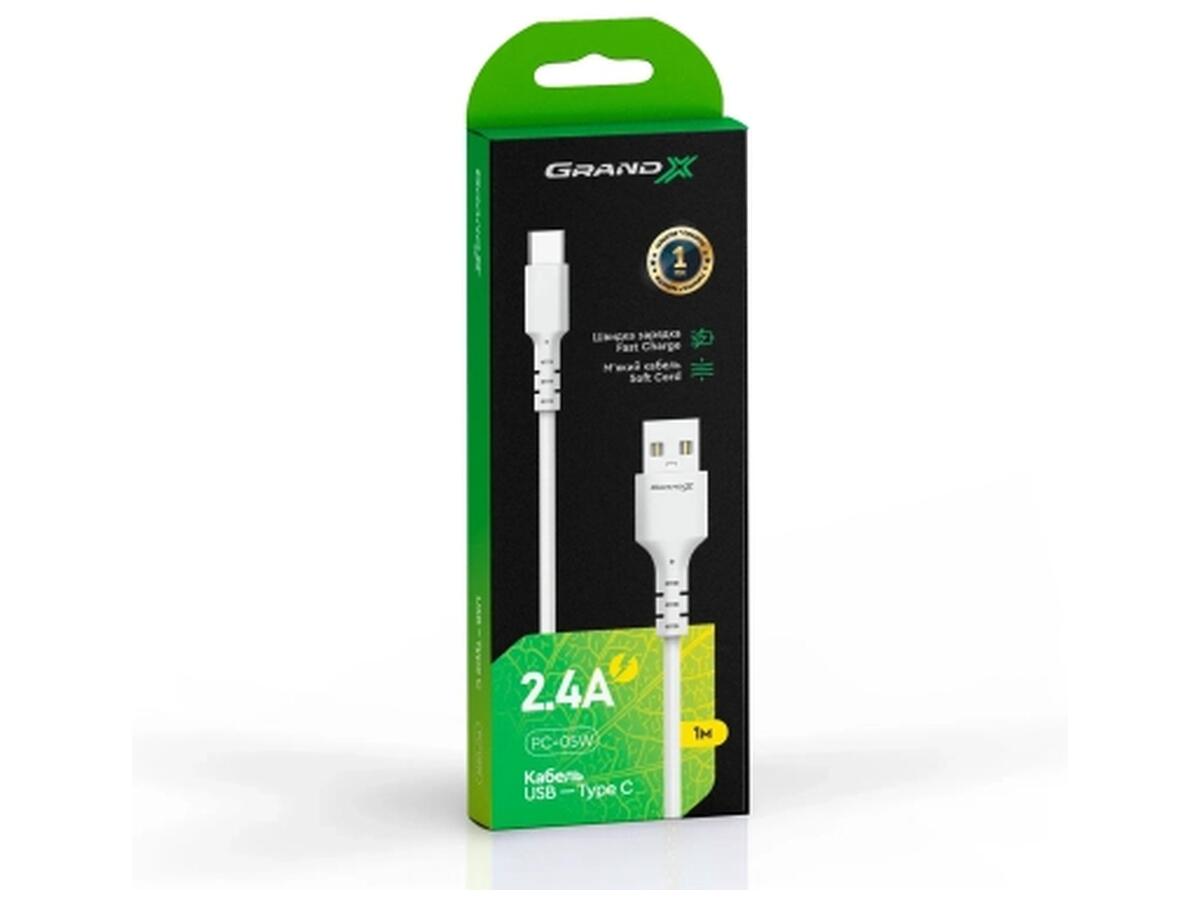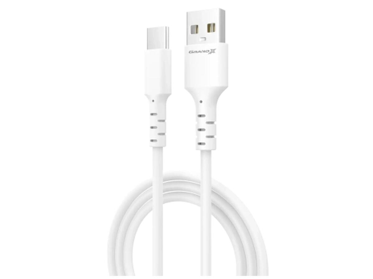 Дата кабель USB 2.0 AM to USB-C 1.0m 3A white Grand-X (PC-05W)